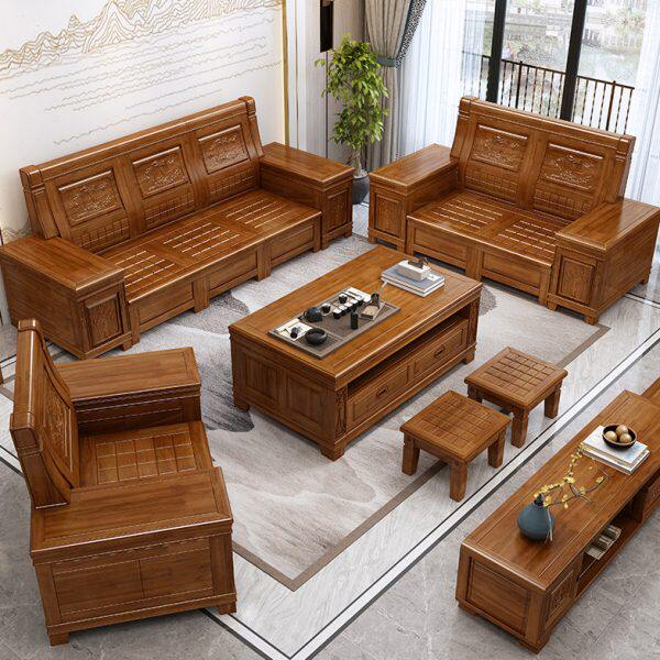 储物冬夏大香樟木实木沙发组合客厅沙发仿古小户型两用新中式家具