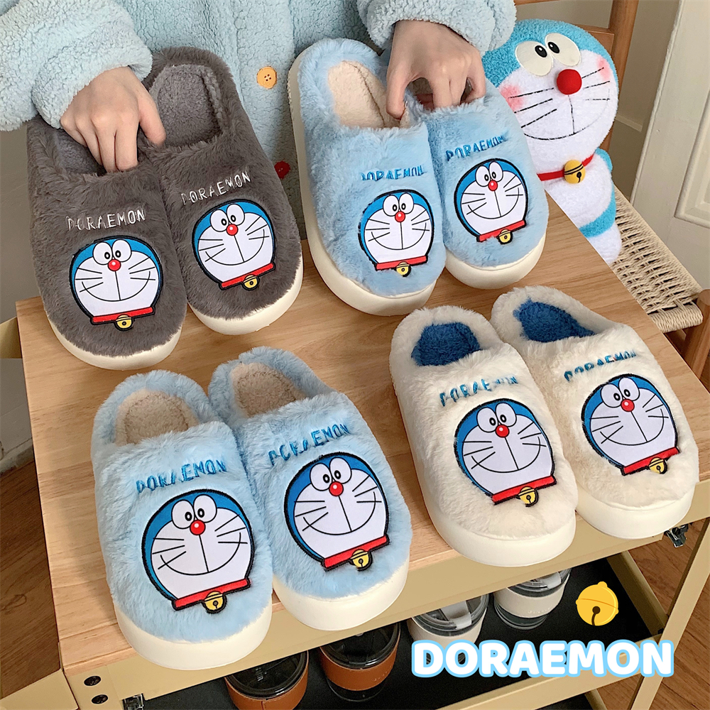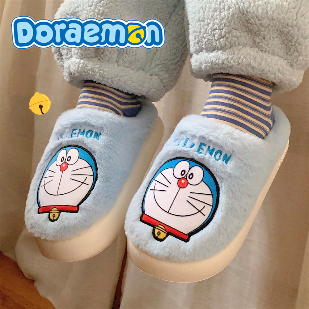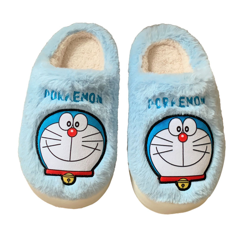 细细条 可爱叮当猫棉拖鞋男女防滑居家正版哆啦A梦冬季情侣毛毛鞋