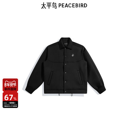 太平鸟男装立体印花休闲夹克翻领茄克外套潮流图案刺绣时尚外套