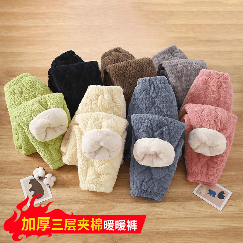 三层夹棉袄暖暖裤儿童加厚珊瑚绒家居裤秋冬男童女童保暖宝宝睡裤