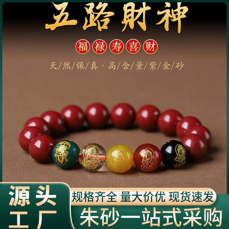 2025天然原矿朱砂晶体砂五路财神貔貅手串紫金帝王红砂男女款手链