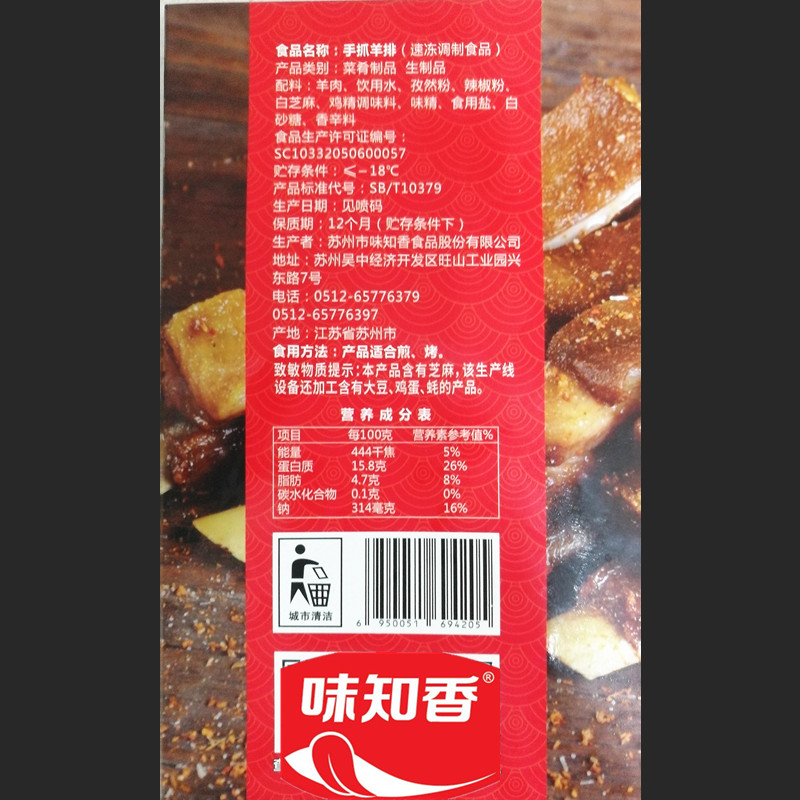 味知香手抓羊排400g孜然羊排烧烤微波炉