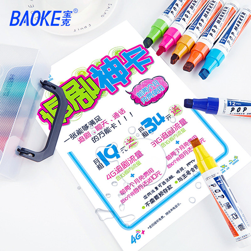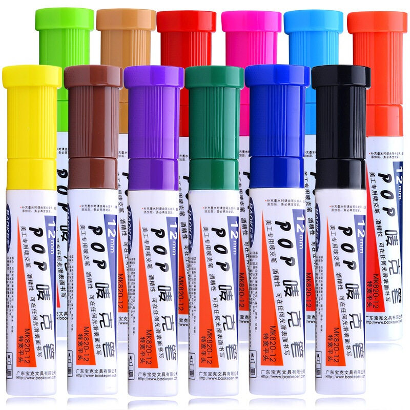 宝克POP唛克笔12mm美工海报笔广告设计手绘专用记号笔酒精马克笔