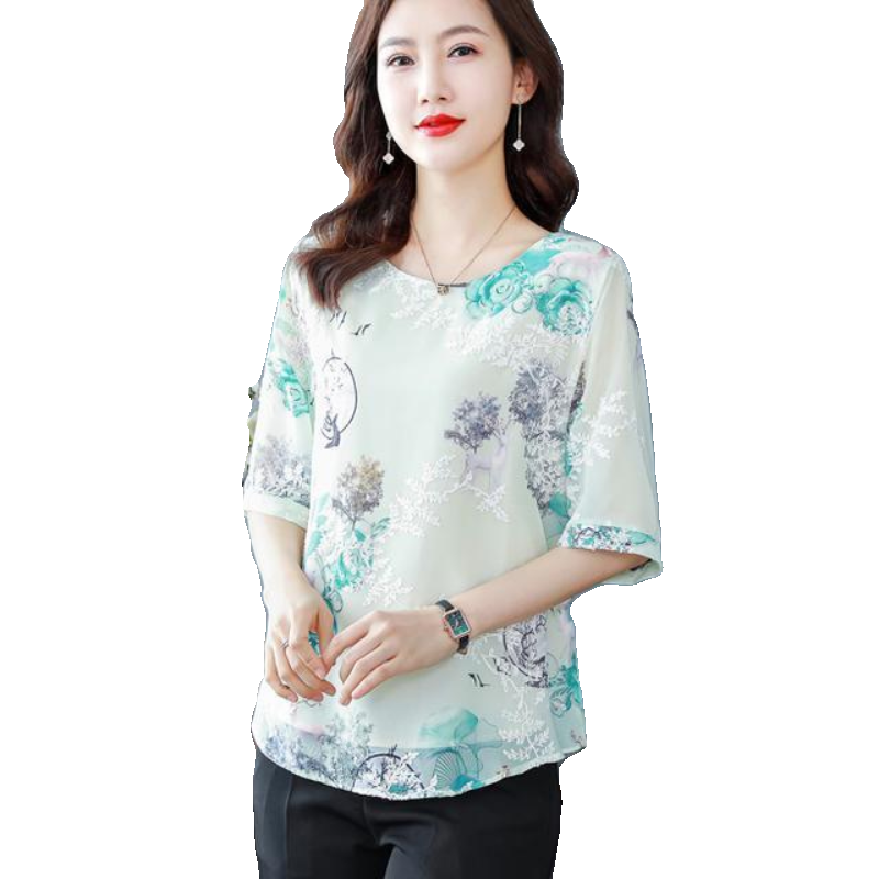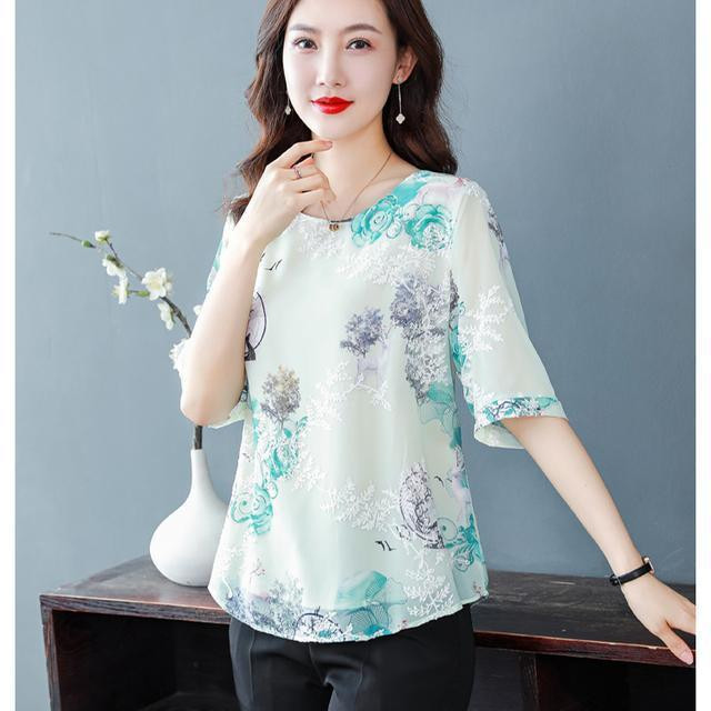 中袖雪纺衬衫女士装夏季2025年新款短袖上衣妈妈时尚漂亮洋气小衫