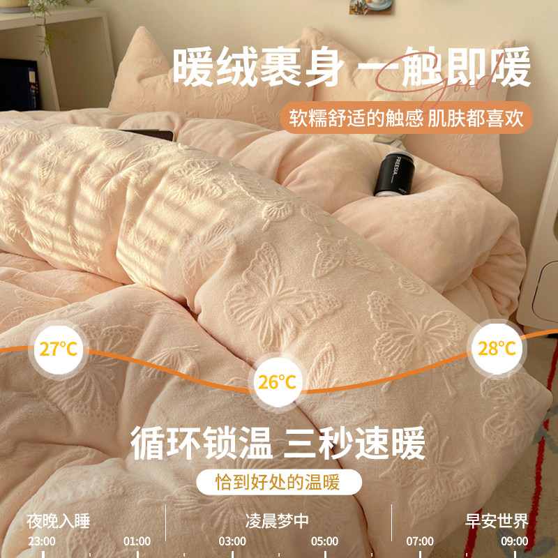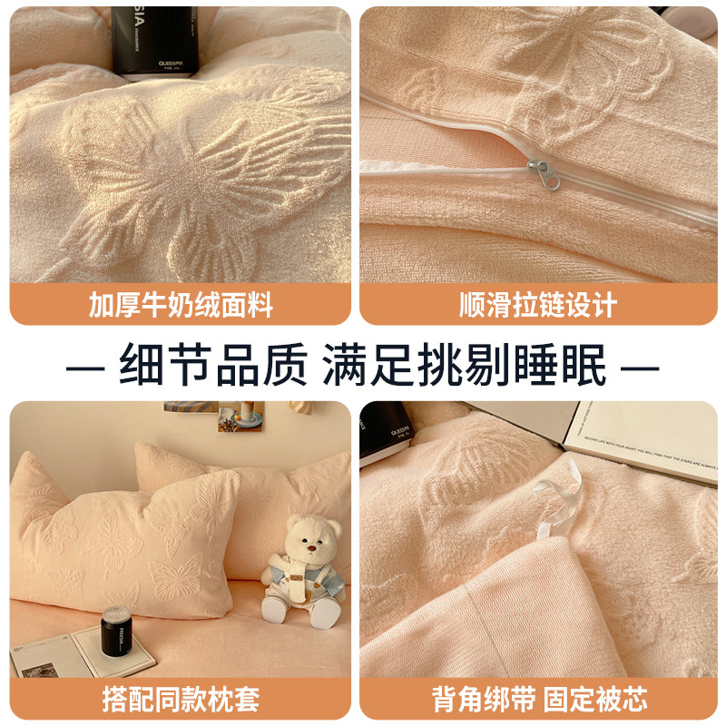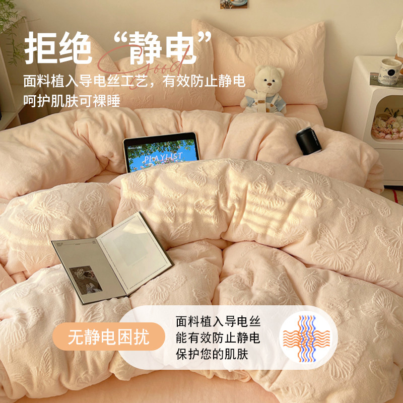 INS蝴蝶雕花牛奶绒四件套冬季新款加厚珊瑚绒床品被套床单三件套4