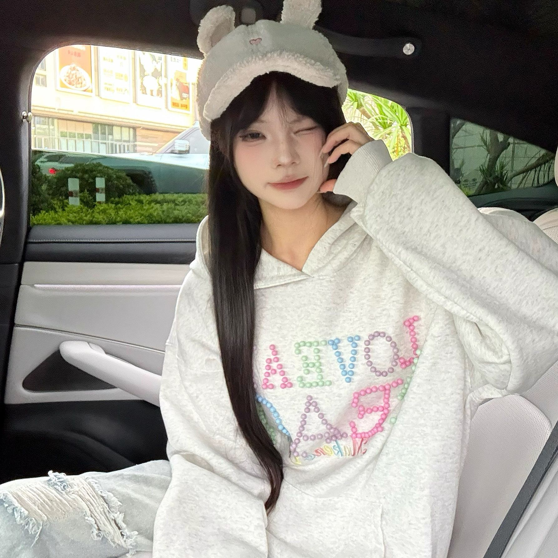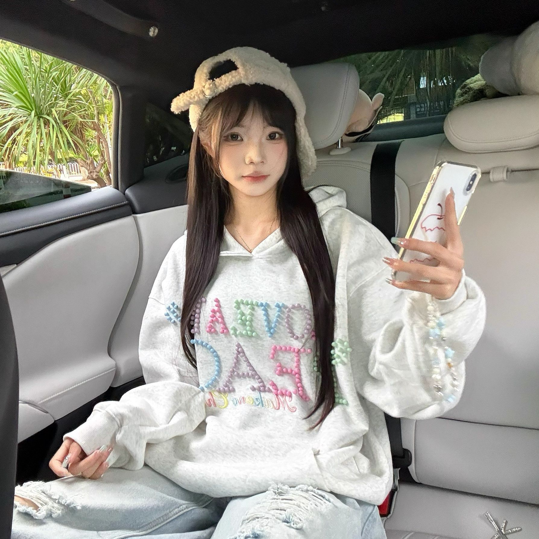 美式复古字母刺绣纯棉长袖卫衣女秋冬款加绒加厚宽松显瘦百搭上衣