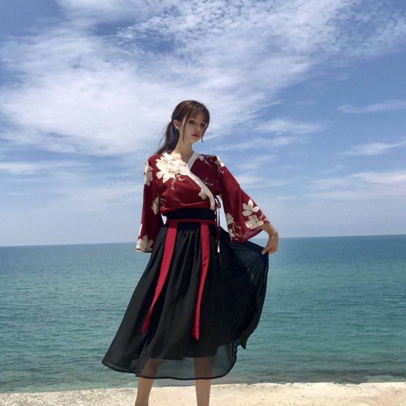 古装汉服女夏季薄款中国风改良长裙夏汉元素两件套装折叠短裙茶服