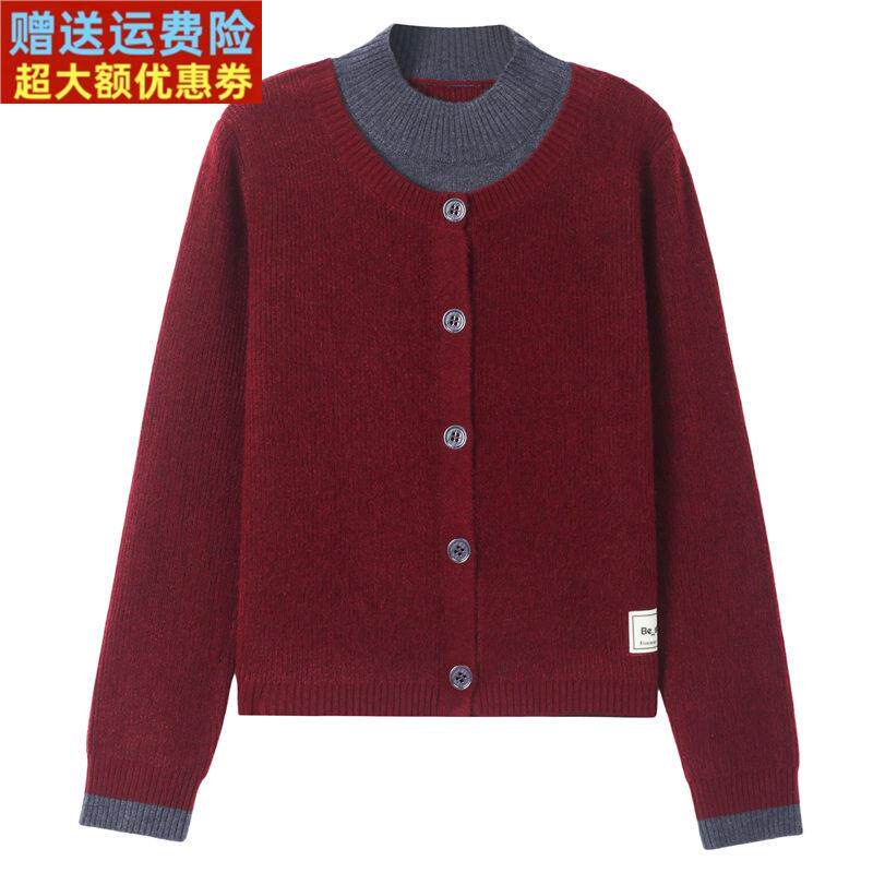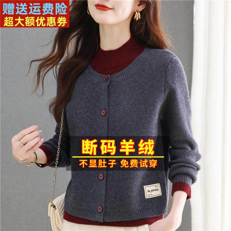 鄂尔多斯市半高领羊绒衫女秋冬高级感假两件针织开衫上衣加厚毛衣