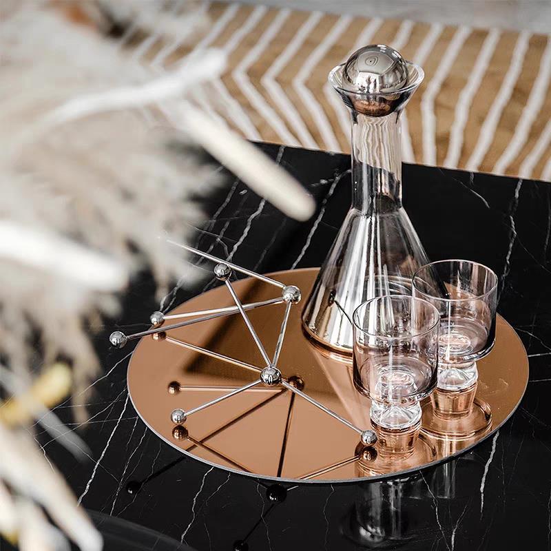 现代轻奢金属托盘酒具组合搭配创意摆件桌面餐厅酒柜水吧台样板间