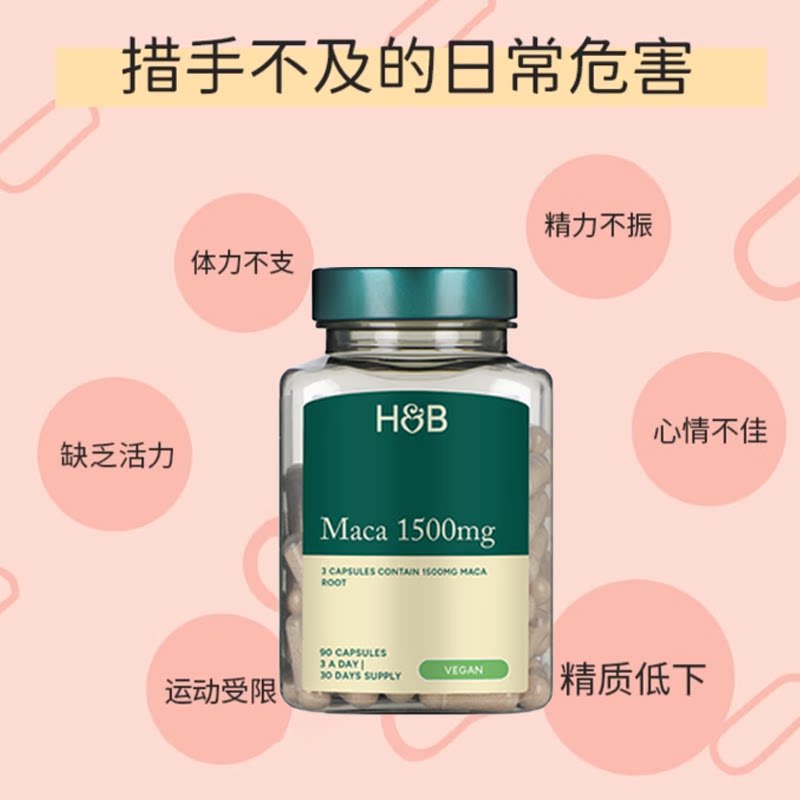 英国HB荷柏瑞玛咖胶囊Maca 1500mg90粒男性补提升荷柏瑞hb玛卡