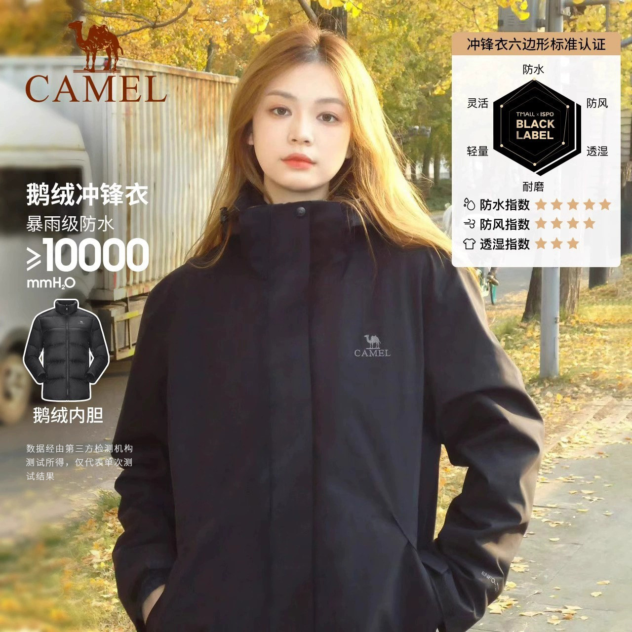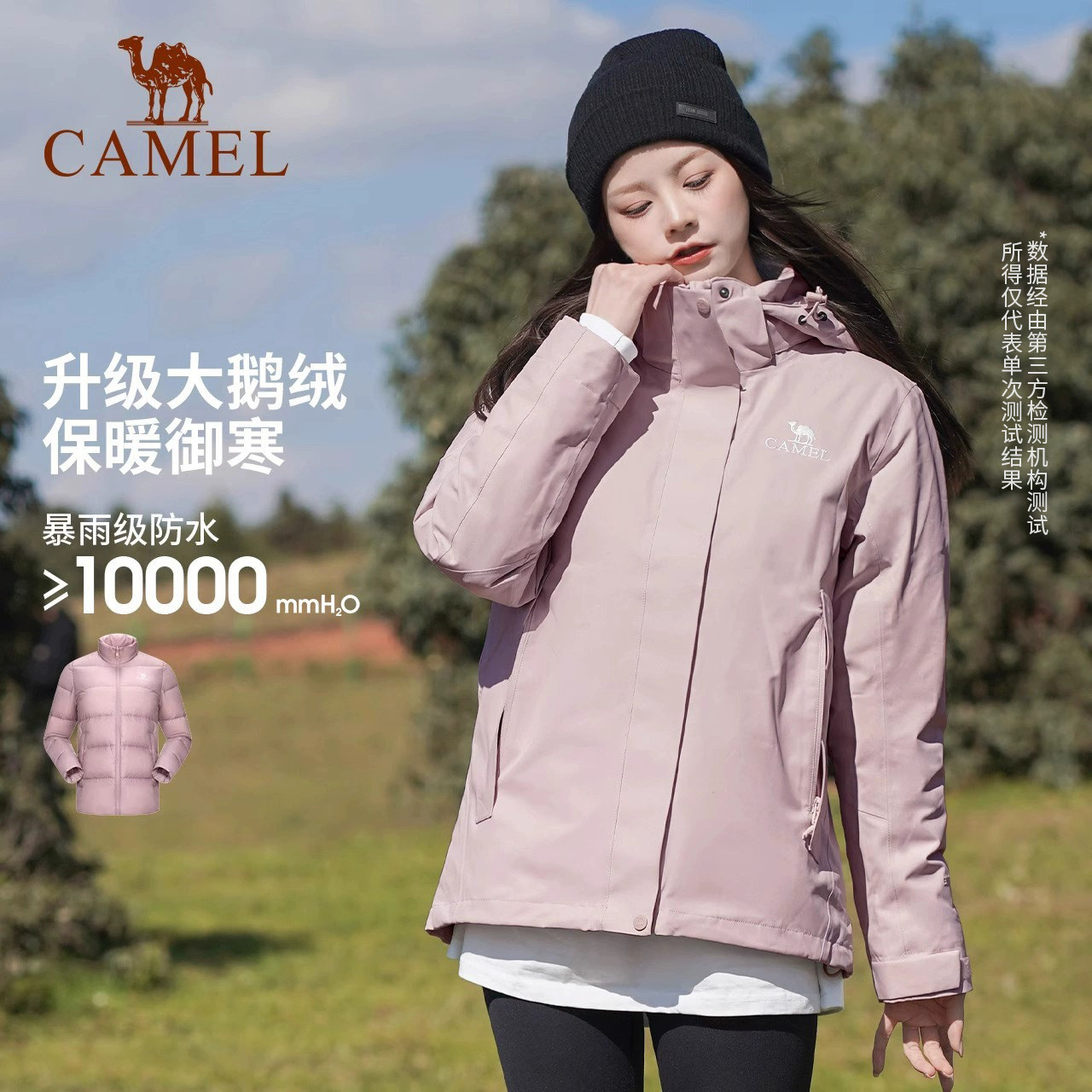 骆驼大鹅冲锋衣女三合一鹅绒内胆户外三防登山服男加厚羽绒服外套