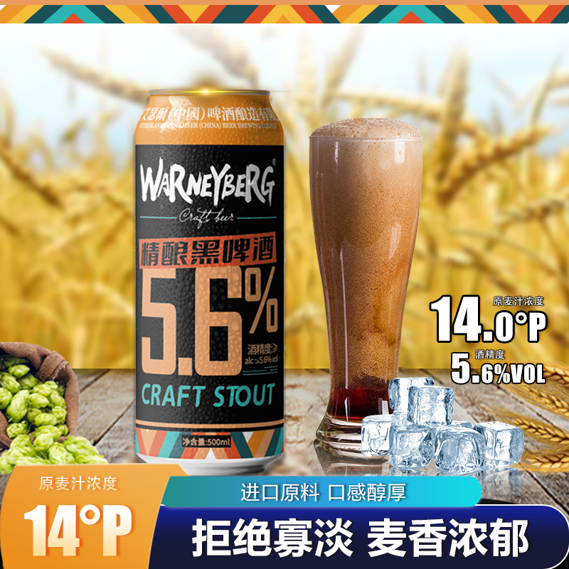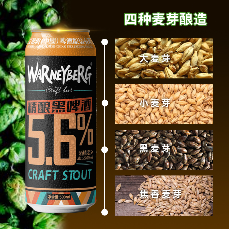 14度全麦黑啤酒500ml*12/24罐装整箱礼盒装德国工艺进口原料精酿
