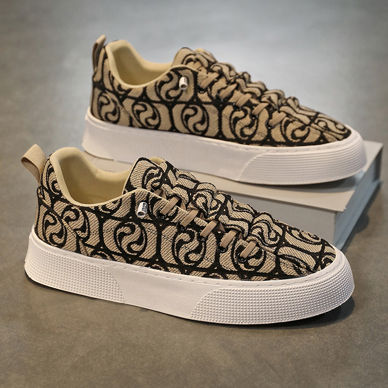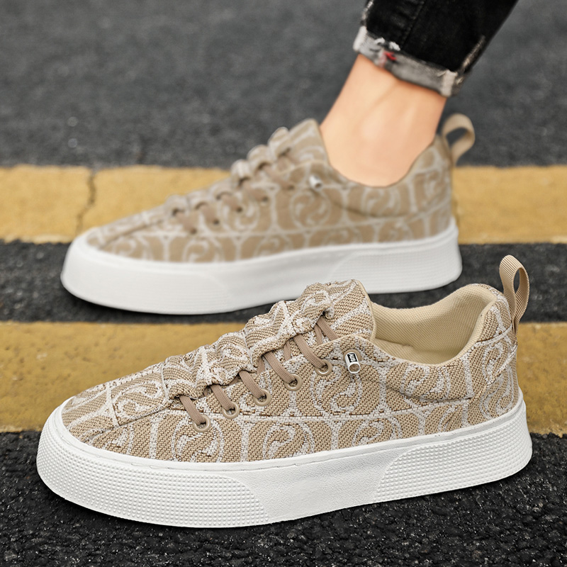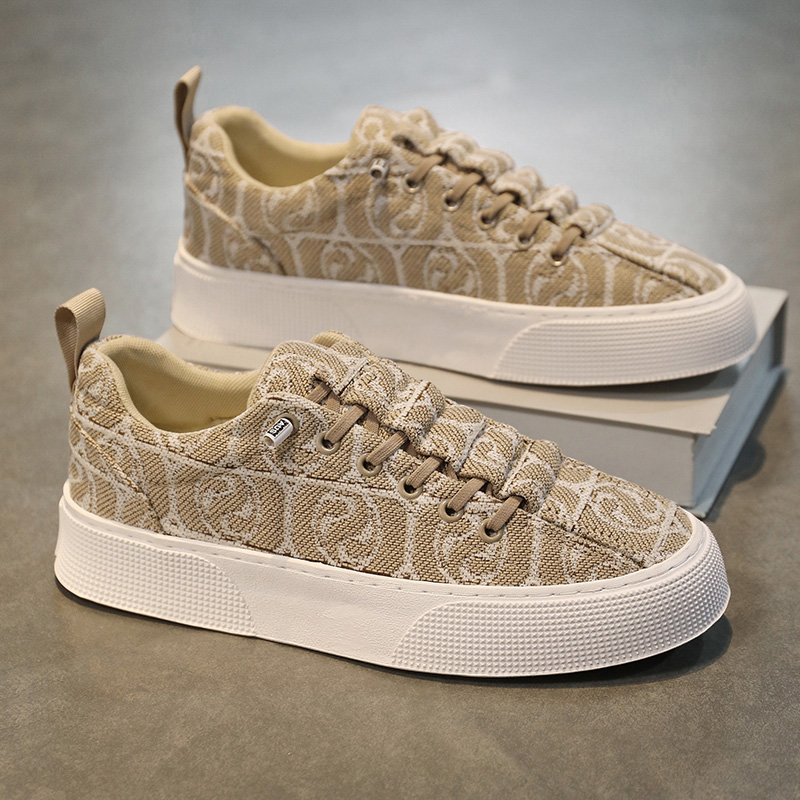 帆布鞋男夏季潮流百搭休闲板鞋青少年一脚蹬软底运动增高印花布鞋