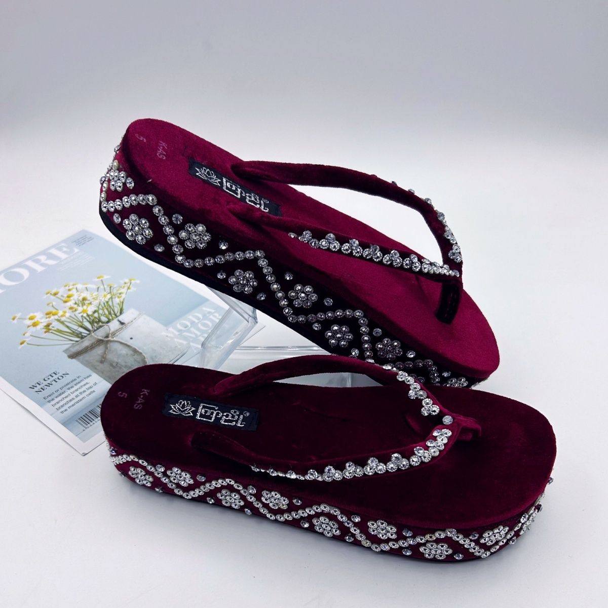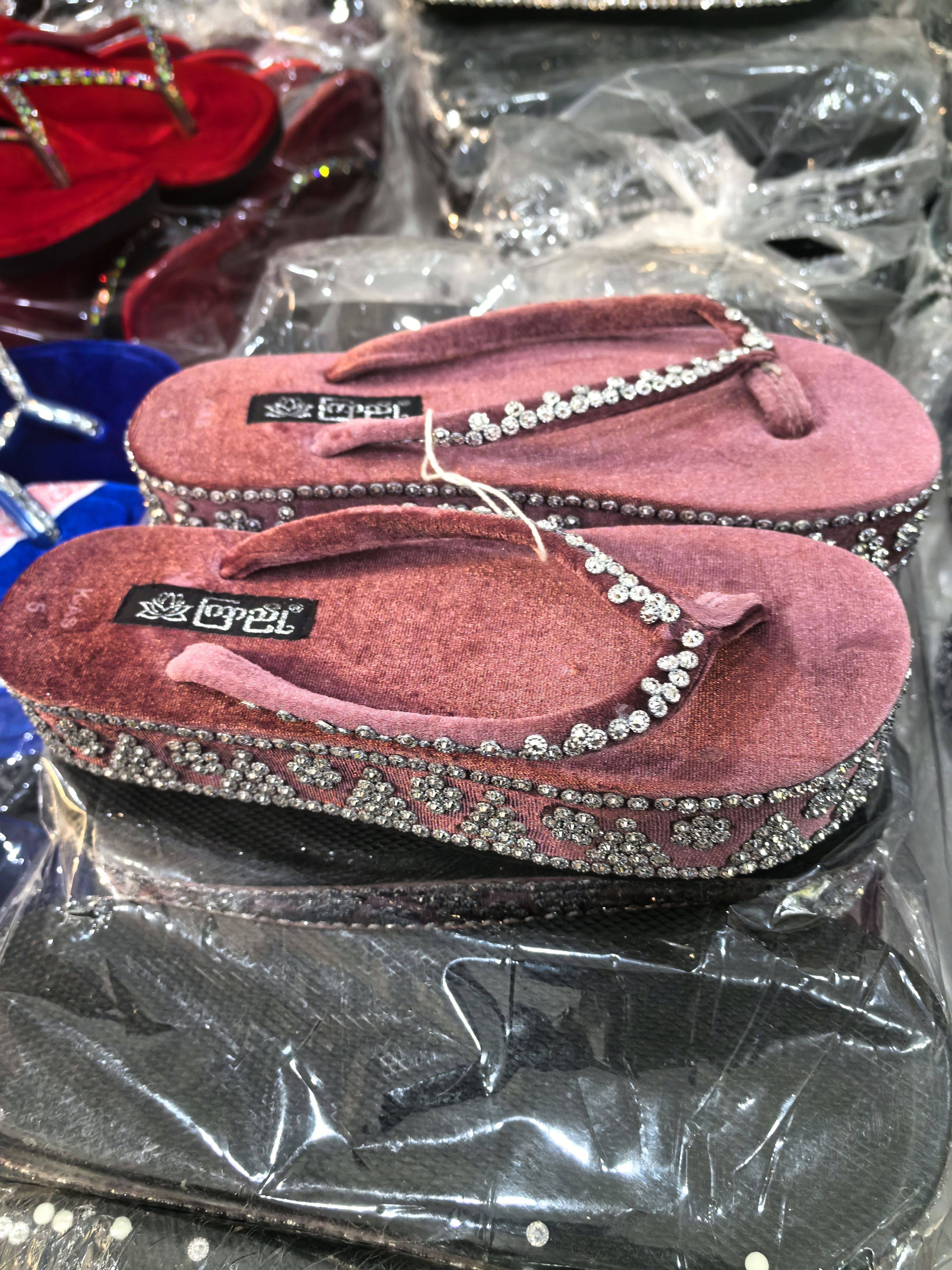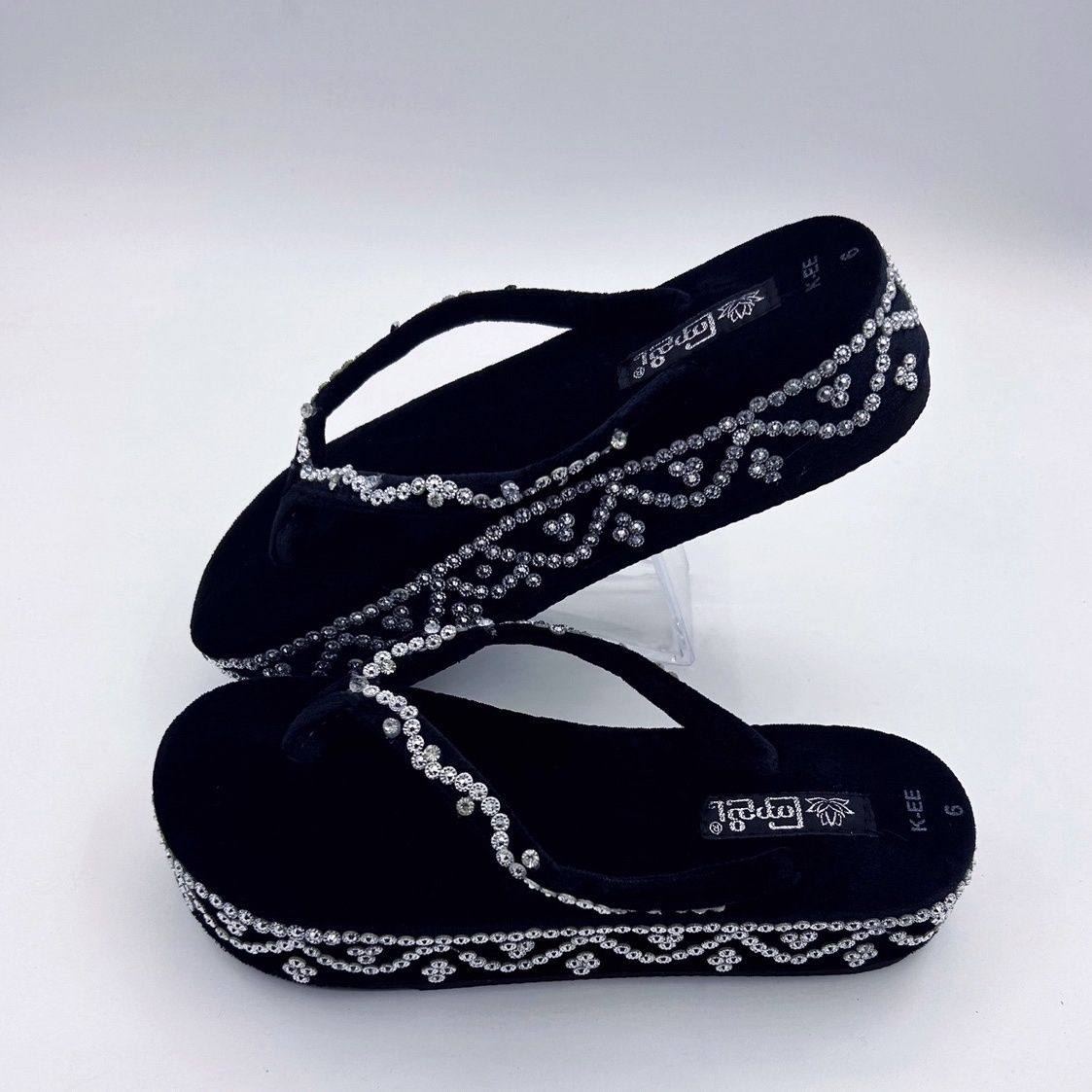 缅甸拖鞋亮晶晶云南傣族中跟人字拖女款泰国少数民族服装配饰特色