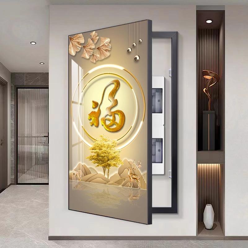 免打孔电表箱装饰画遮挡配电箱遮丑神器新中式家和万事兴富贵竖版