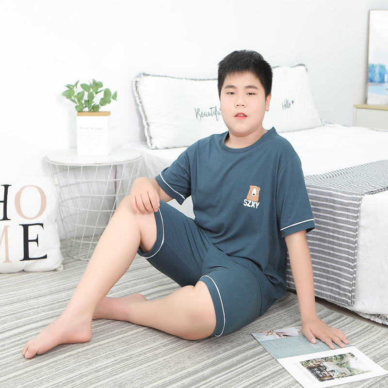 胖童家居服薄款套装宽松短袖男童夏装中大童加肥加大胖男孩子套装