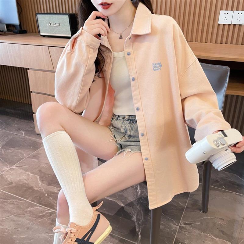粉色长袖衬衫外套夹克女士2025年早春秋装新款韩版休闲中长款上衣
