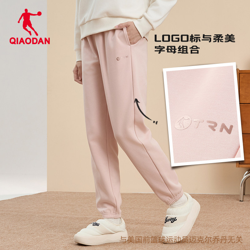 乔丹针织女子收口运动加绒长裤2025冬季新款休闲保暖官方直筒正品
