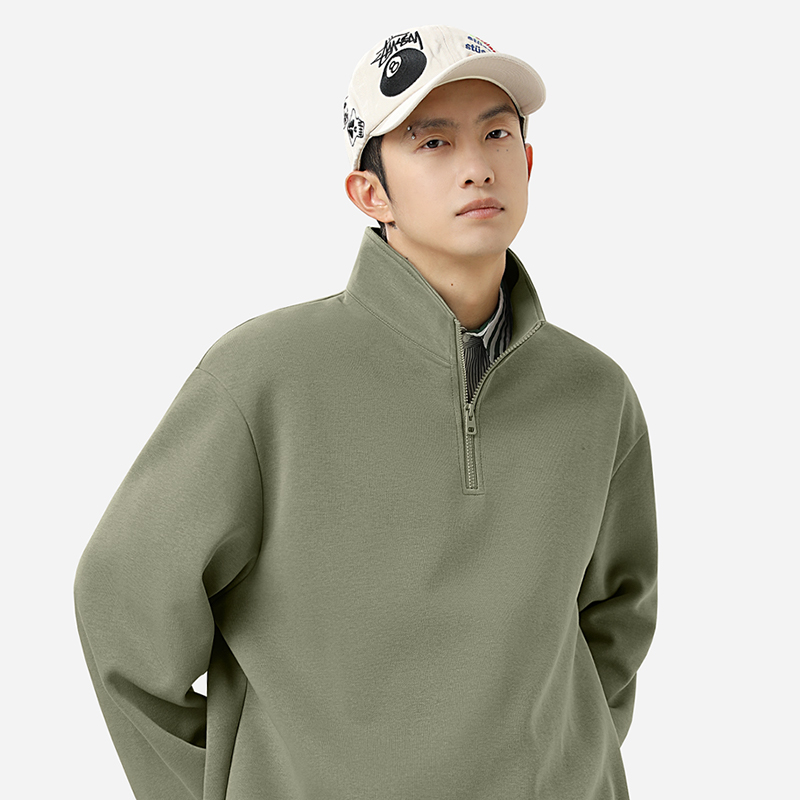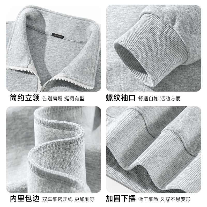 HG真维斯男款卫衣秋季运动风半开襟上衣男重磅舒适华棉立领外套潮