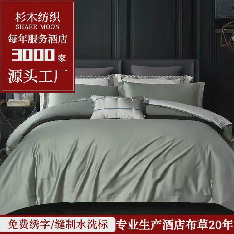 全棉酒店四件套60支贡缎长绒棉酒店布草纯色民宿客栈床单被罩
