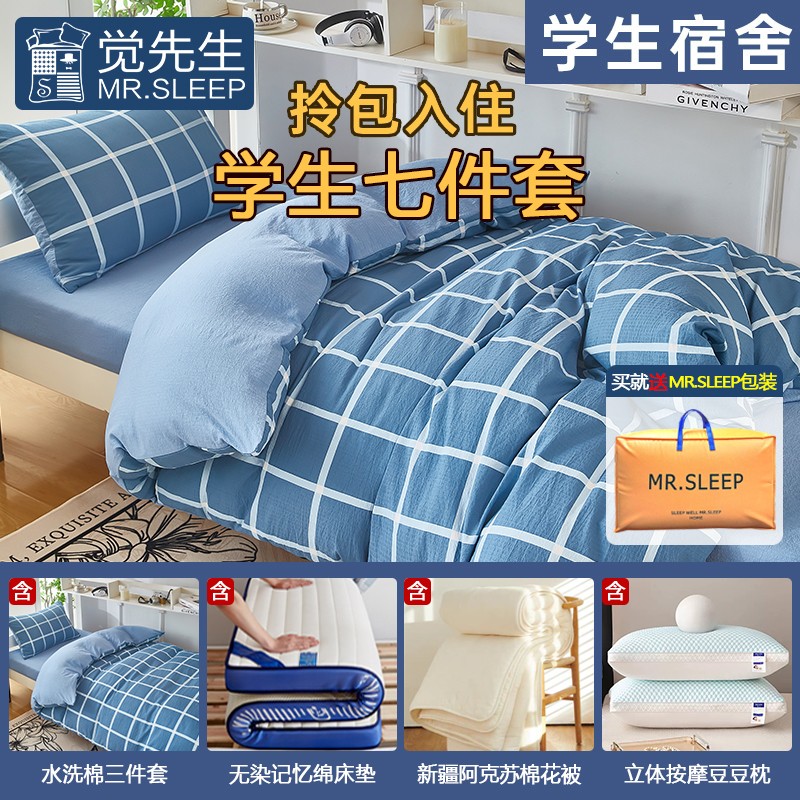 学生宿舍六件套拎包入住开学专用床上用品三件套+床垫+棉被+枕芯
