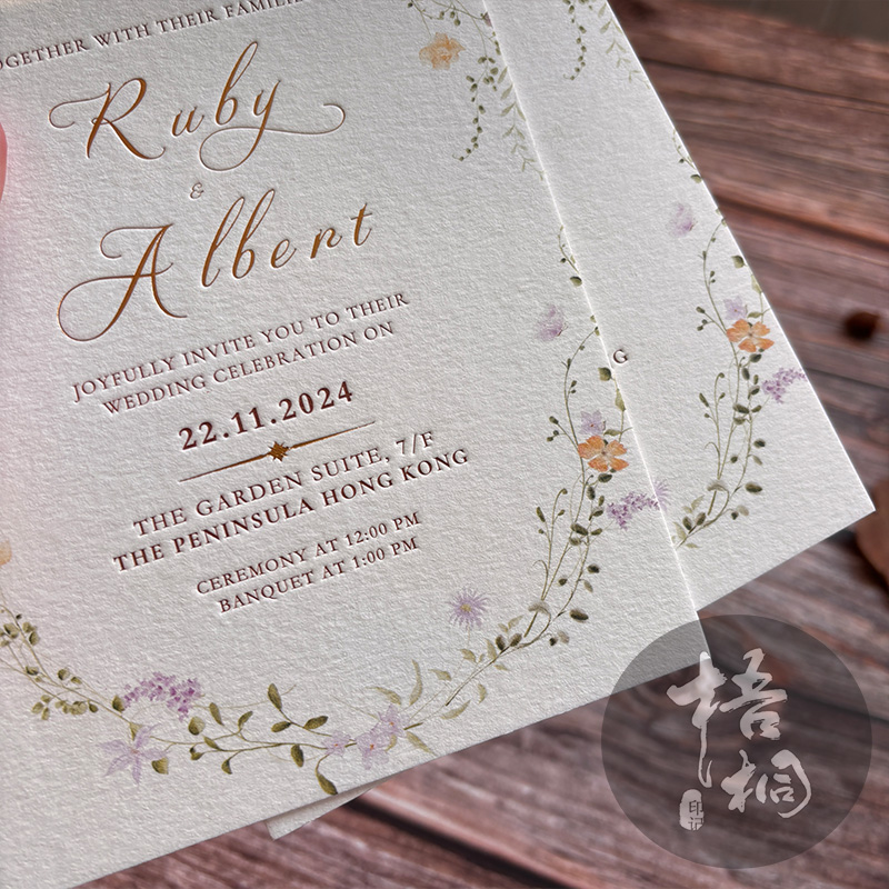 棉纸Letterpress凸版凹印刷双面烫金邀请函请柬手绘紫色喜帖定制