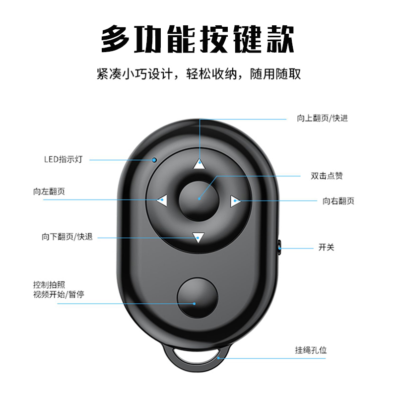 手机蓝牙拍照遥控器自拍杆控制器无线远程录像拍摄抖音视频小说翻页多功能神器安卓苹果华为手机ipad平板通用