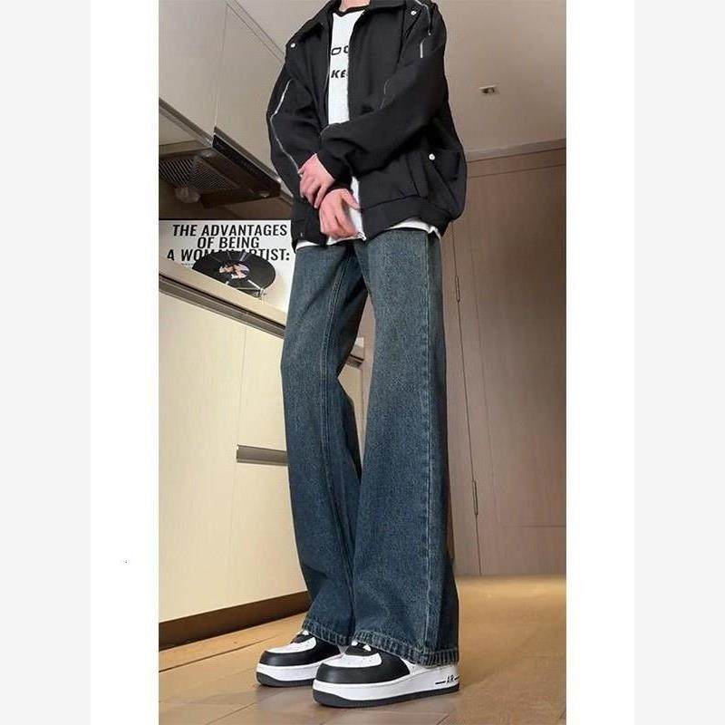 190高个子男加长版美式复古蓝微喇牛仔裤秋冬款休闲裤青少年修身