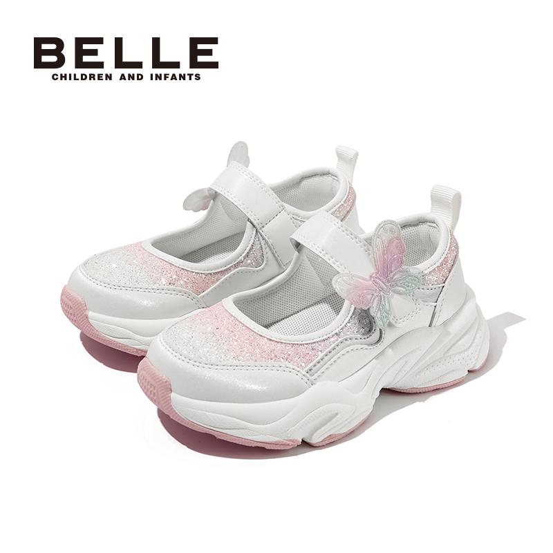 百丽童鞋女童透气运动鞋2025春夏新款小女孩蝴蝶宝宝鞋儿童休闲鞋