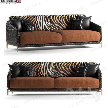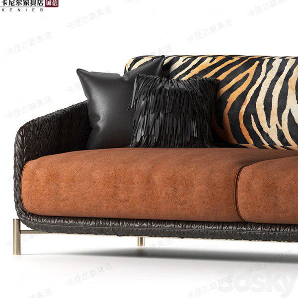 北欧轻奢简约客厅布艺沙发不锈钢皮艺三人沙发酒店样板房组合沙发