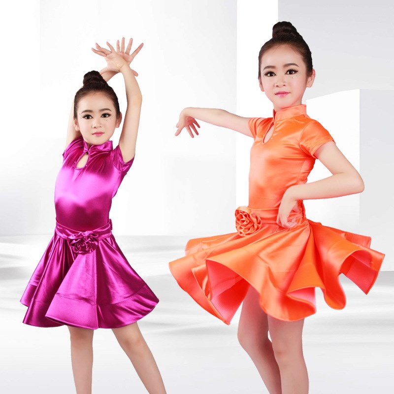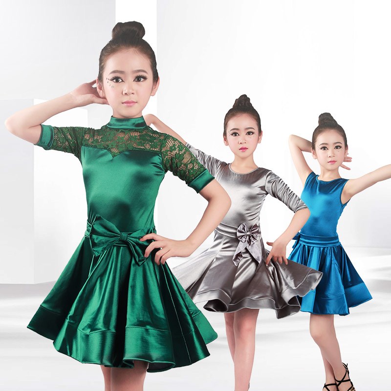 儿童拉丁规定服少儿大摆群比赛服女孩标准缎面拉丁舞服装表演舞裙