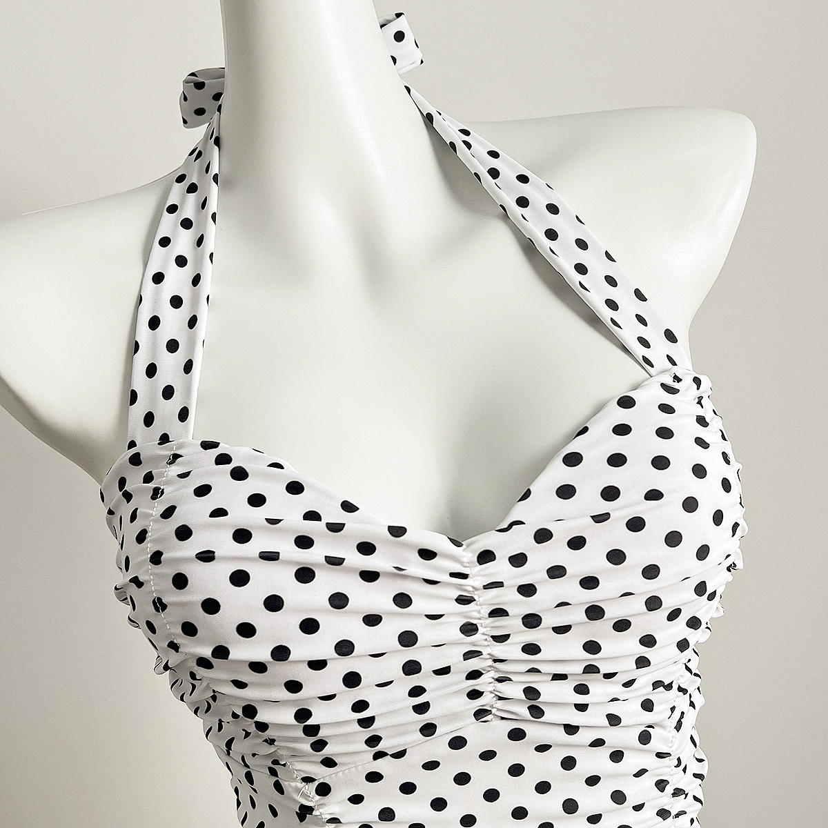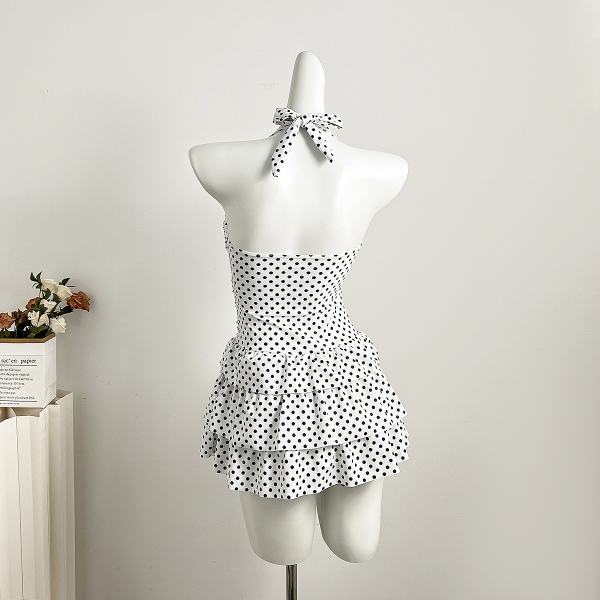 2025新款连体裙式波点微胖泳衣女泡温泉保守显瘦遮肉性感大胸聚拢