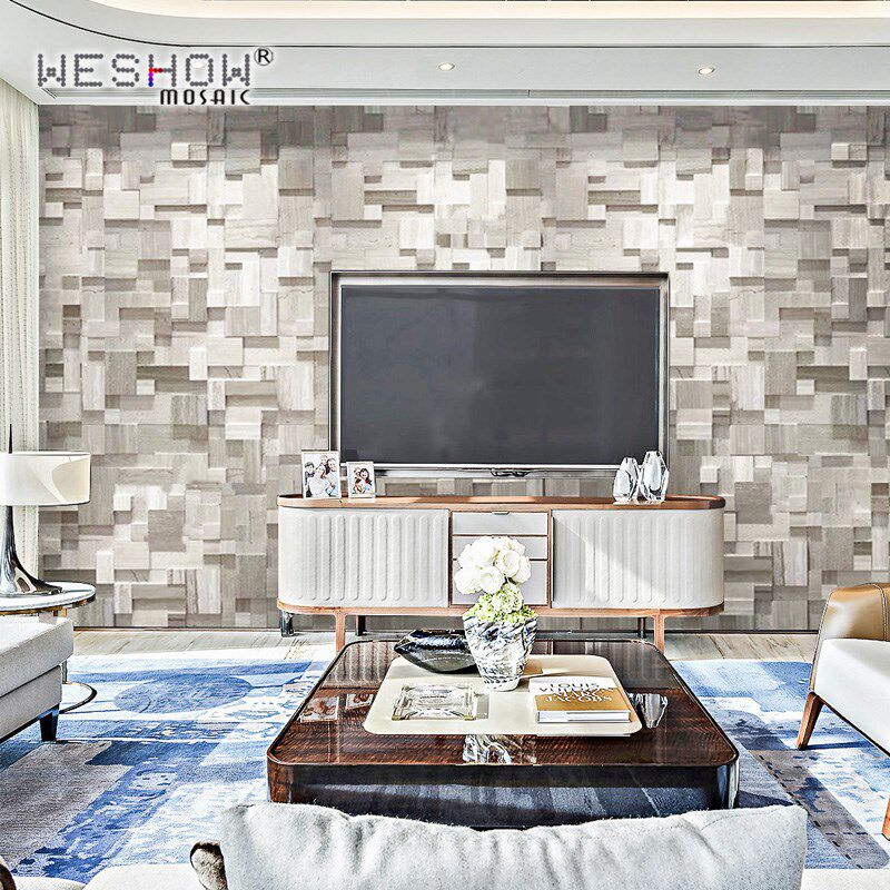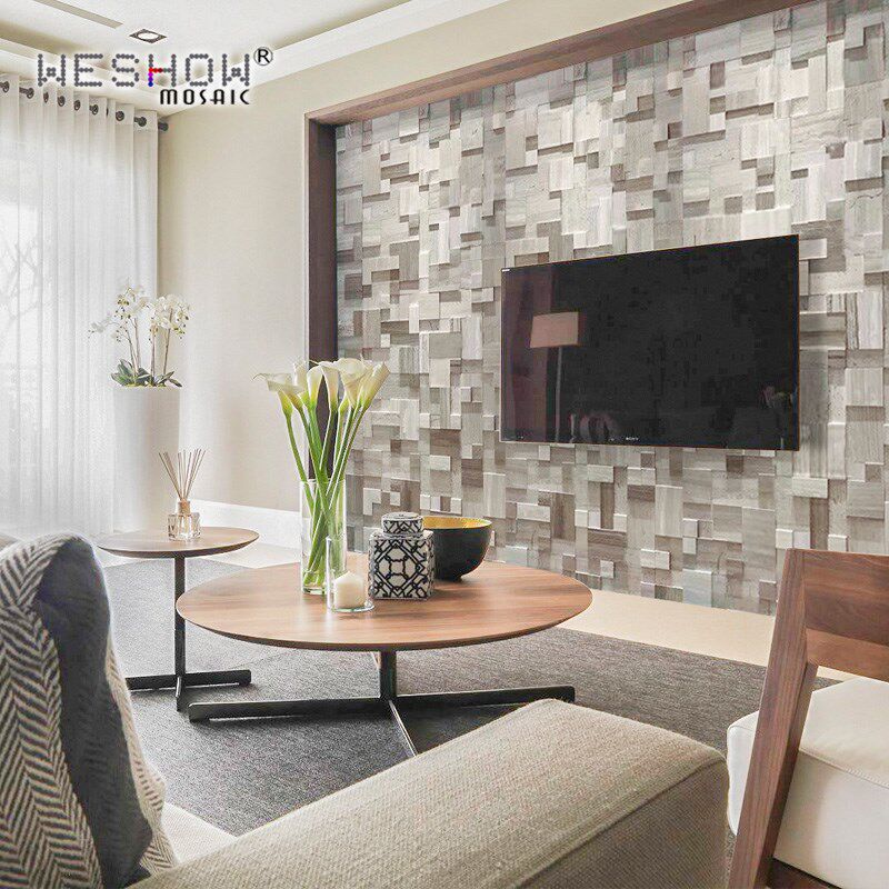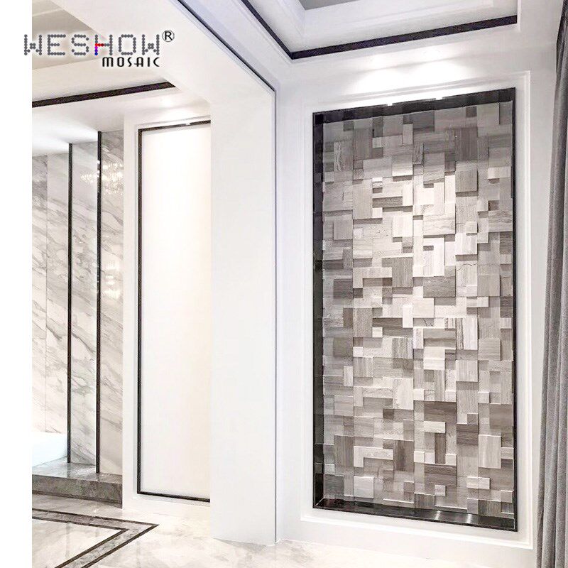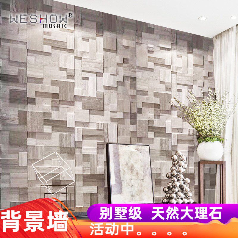 马赛电视背景墙瓷砖灰木纹石材装饰玄关天然大理石文化石