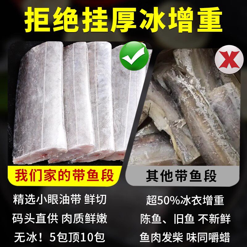 带鱼新鲜冷冻刀鱼中段无冰衣特级大号非舟山东海小眼海鱼整箱10斤