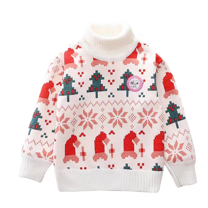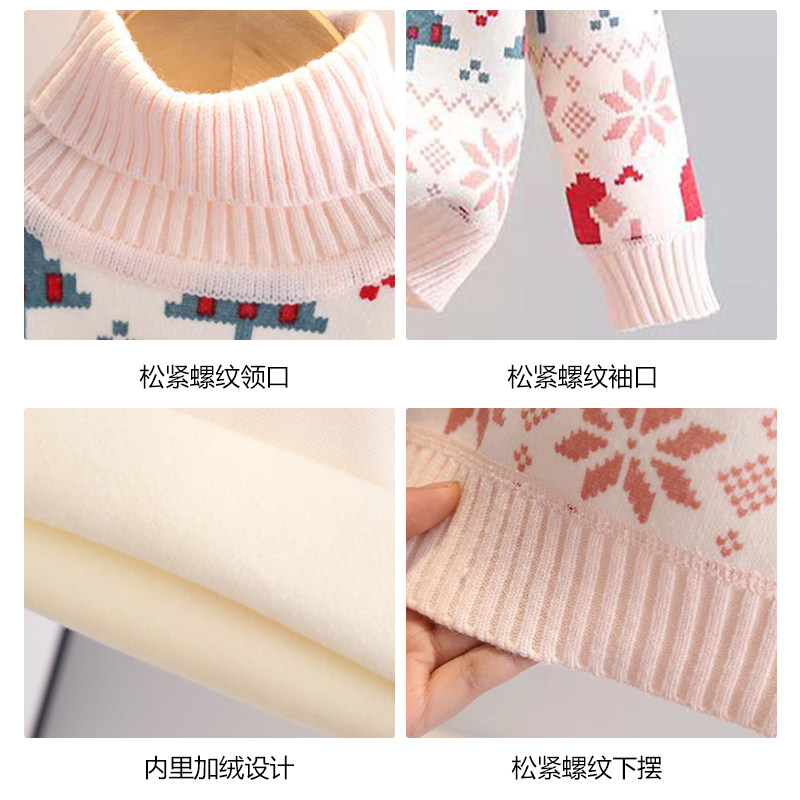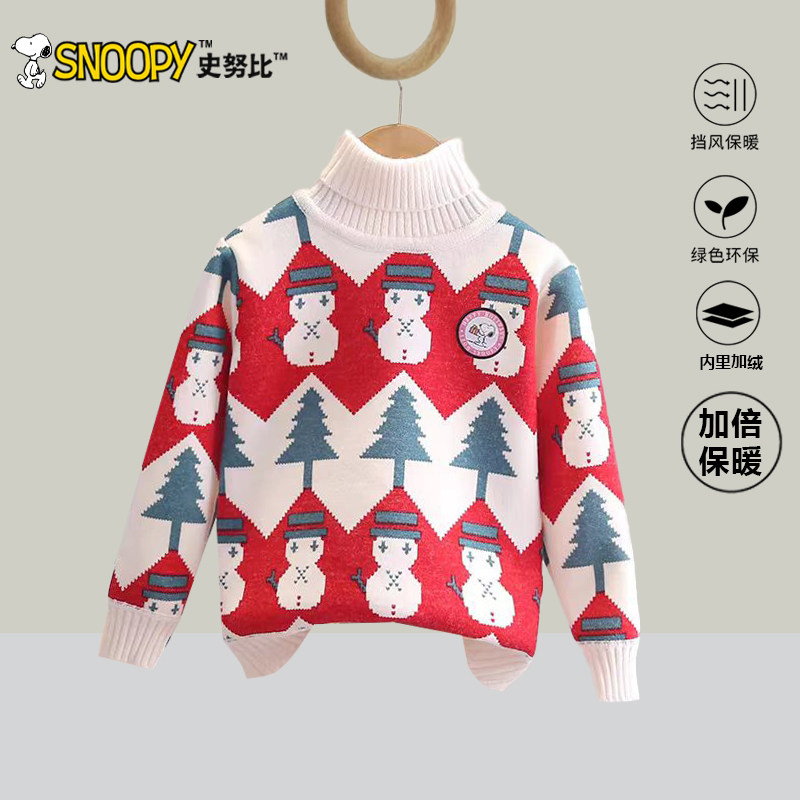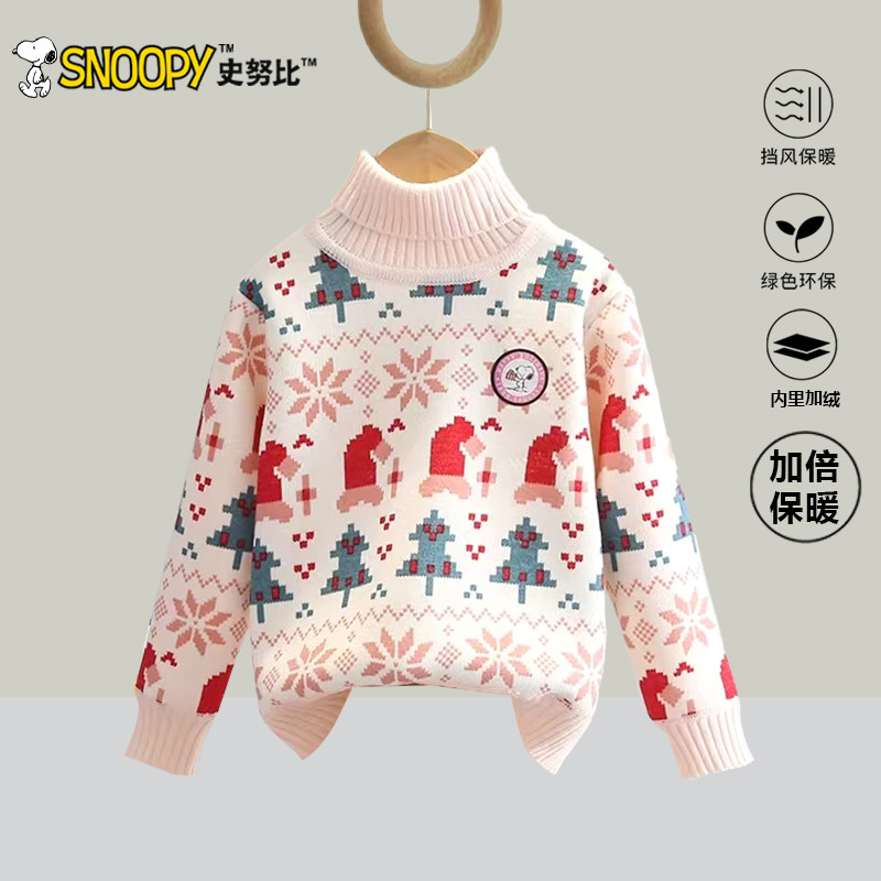 史努比女童加绒高领套头毛衣加厚女宝针织衫上衣冬季韩版卡通圣诞