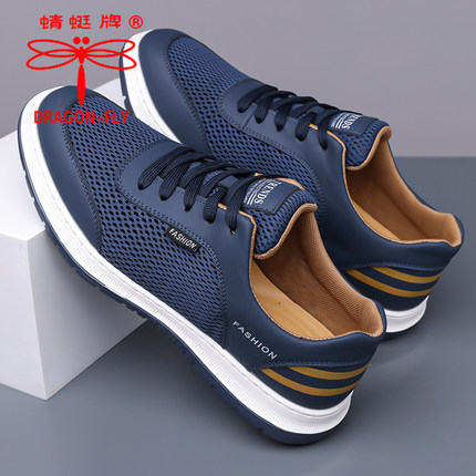 蜻蜓牌软底防滑休闲网面旅游鞋男