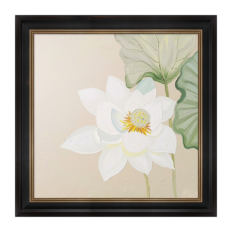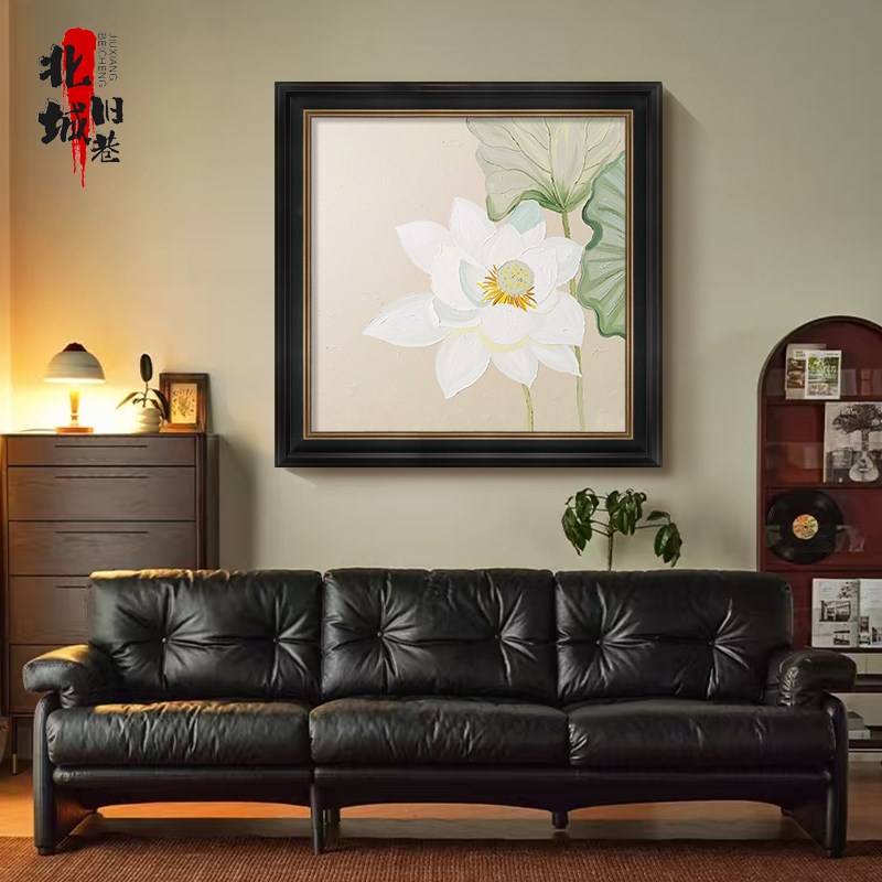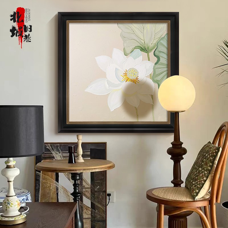 沙发背景墙高级感复古荷花装饰画客厅中古风挂画玄关餐厅手绘油画