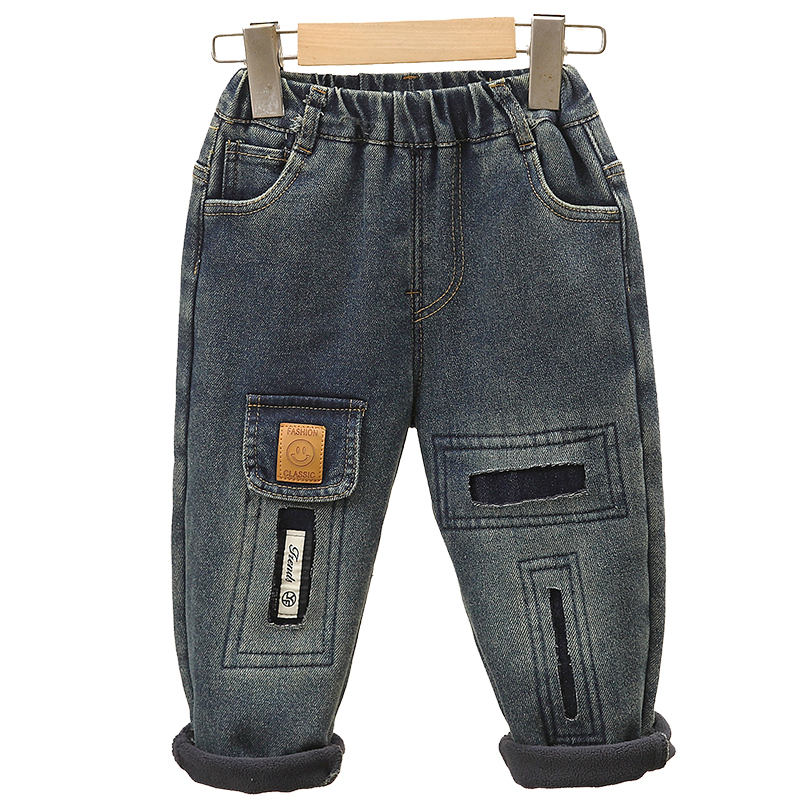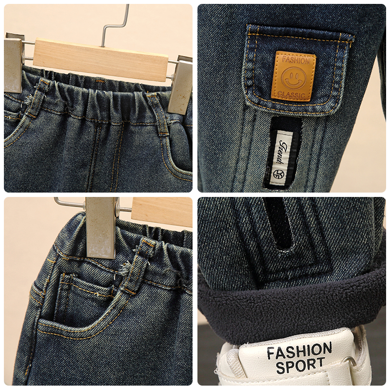 男童加绒牛仔裤秋冬款酷帅宝宝加厚休闲裤冬季儿童一体绒直筒裤子