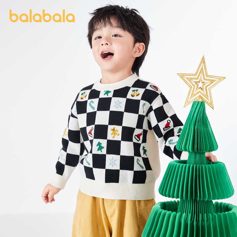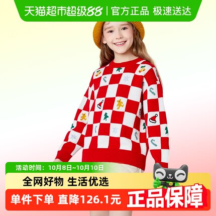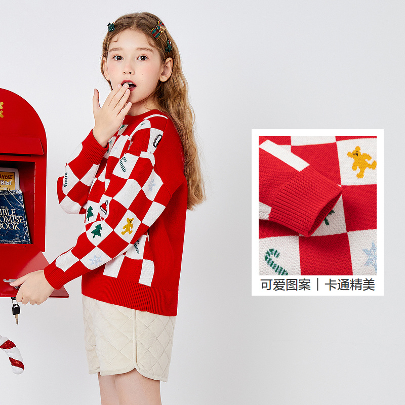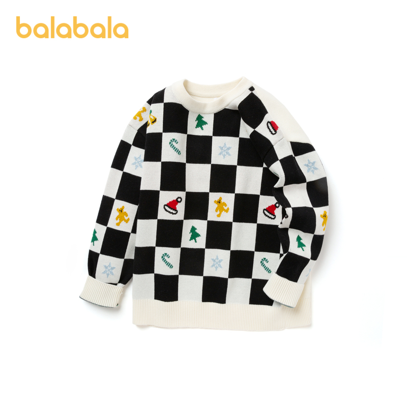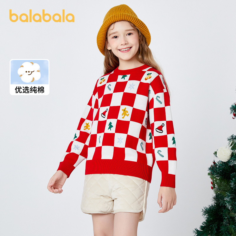 巴拉巴拉亲子款儿童毛衣秋冬中大童打底毛衫保暖棋盘格男童女童潮
