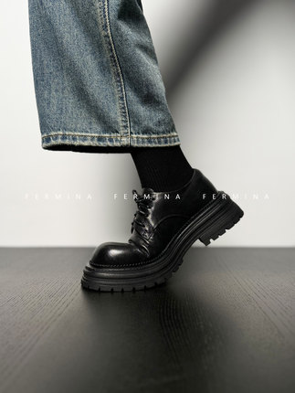 Fermina 复古大圆头乐福鞋女厚底系带jk小皮鞋2024春季英伦风单鞋