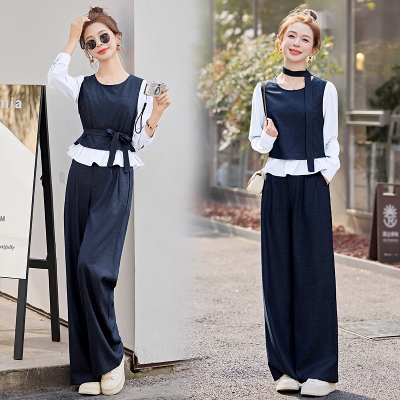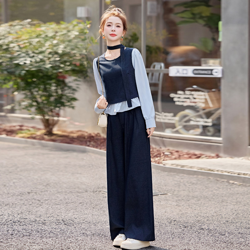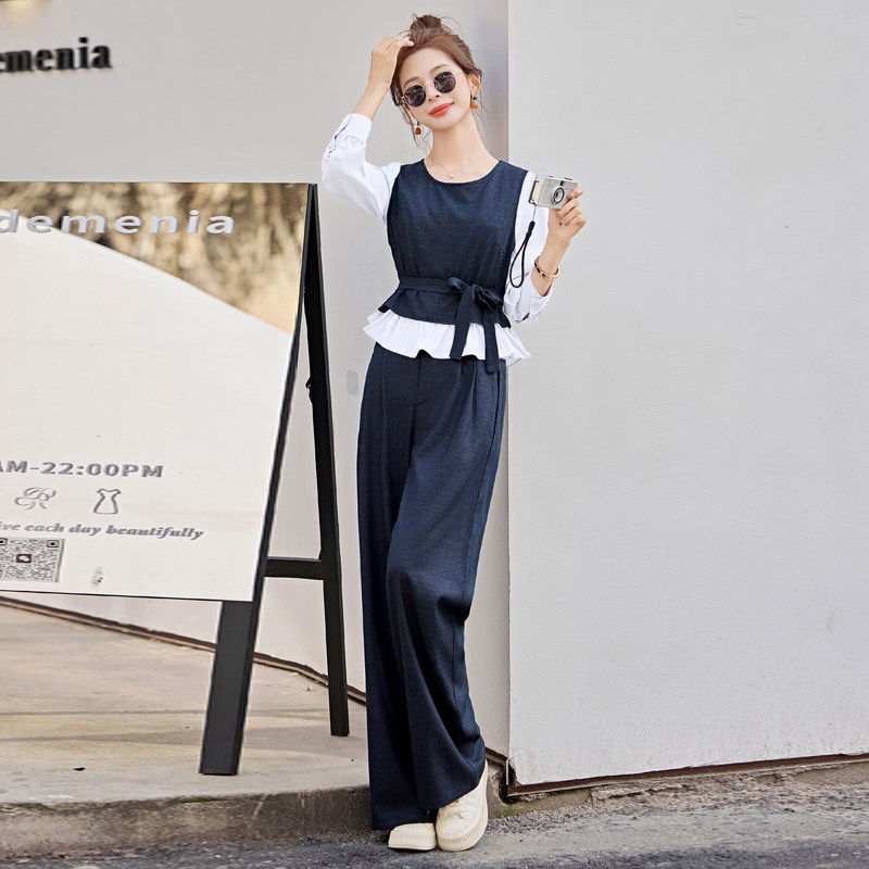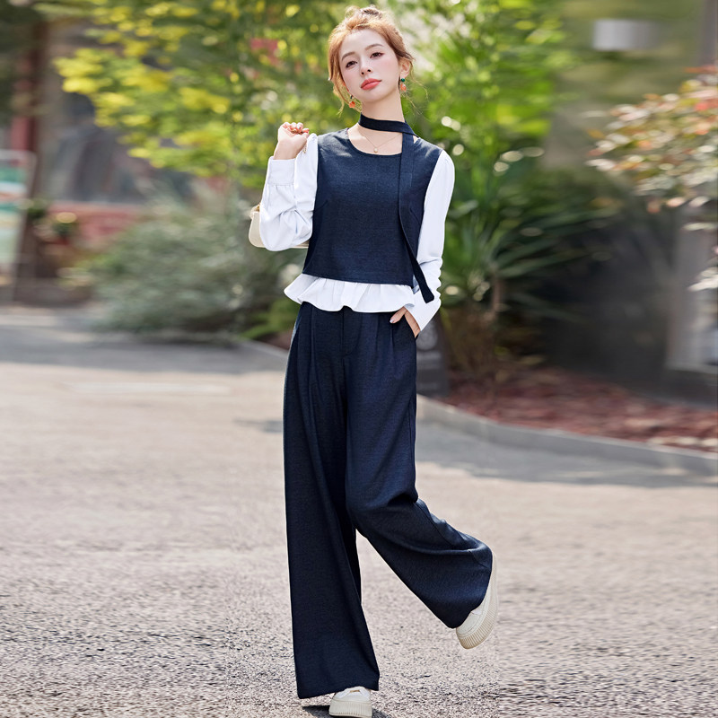 气质韩系穿搭阔腿裤一整套