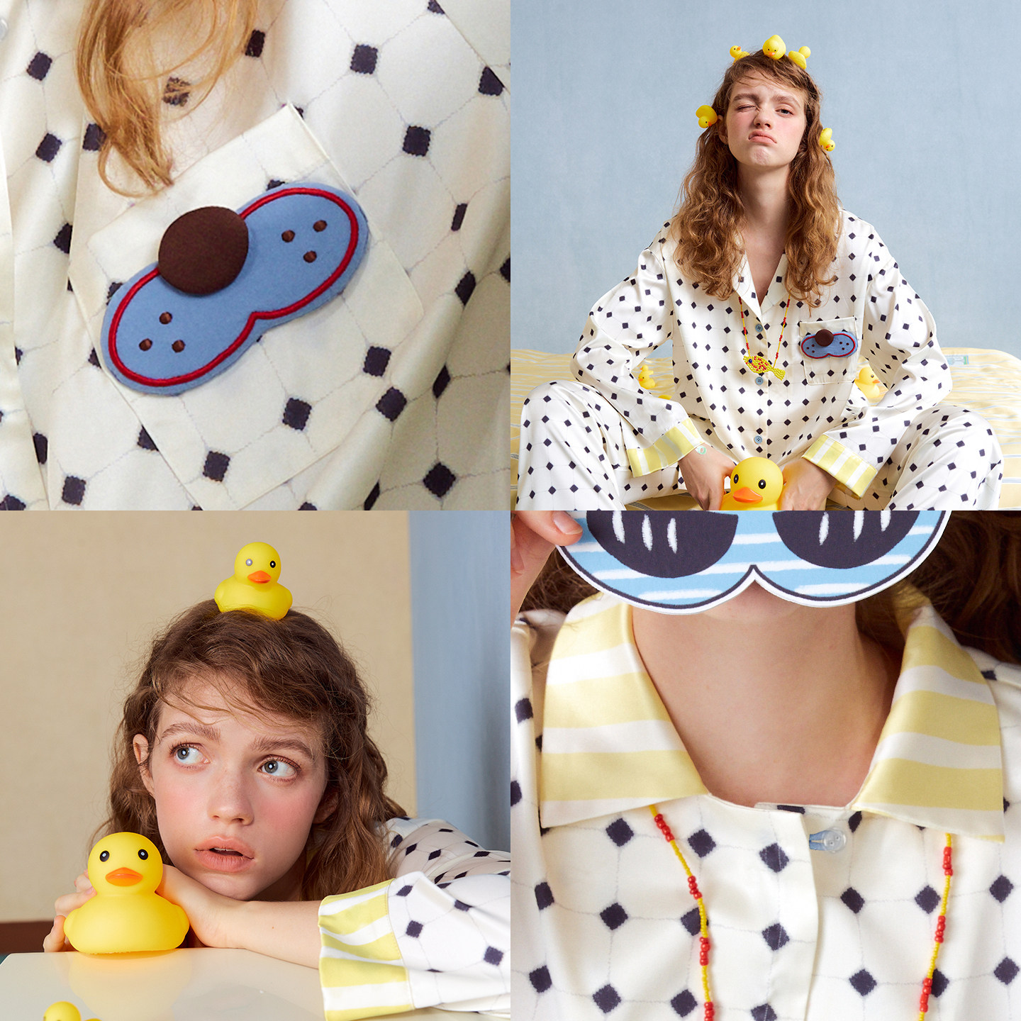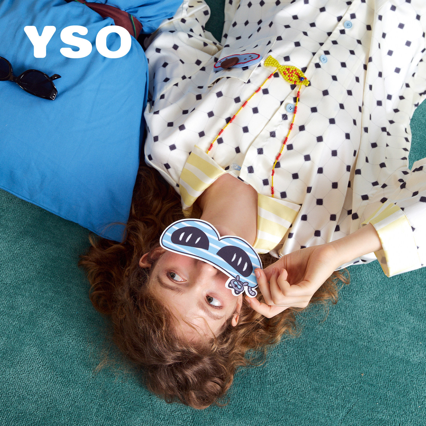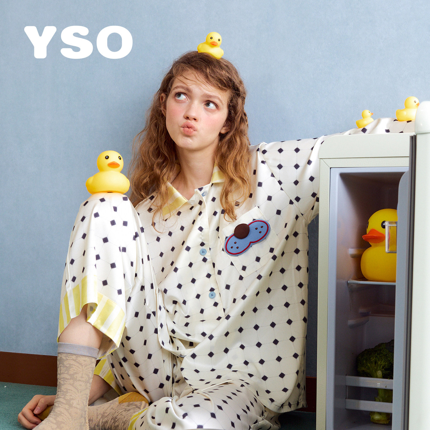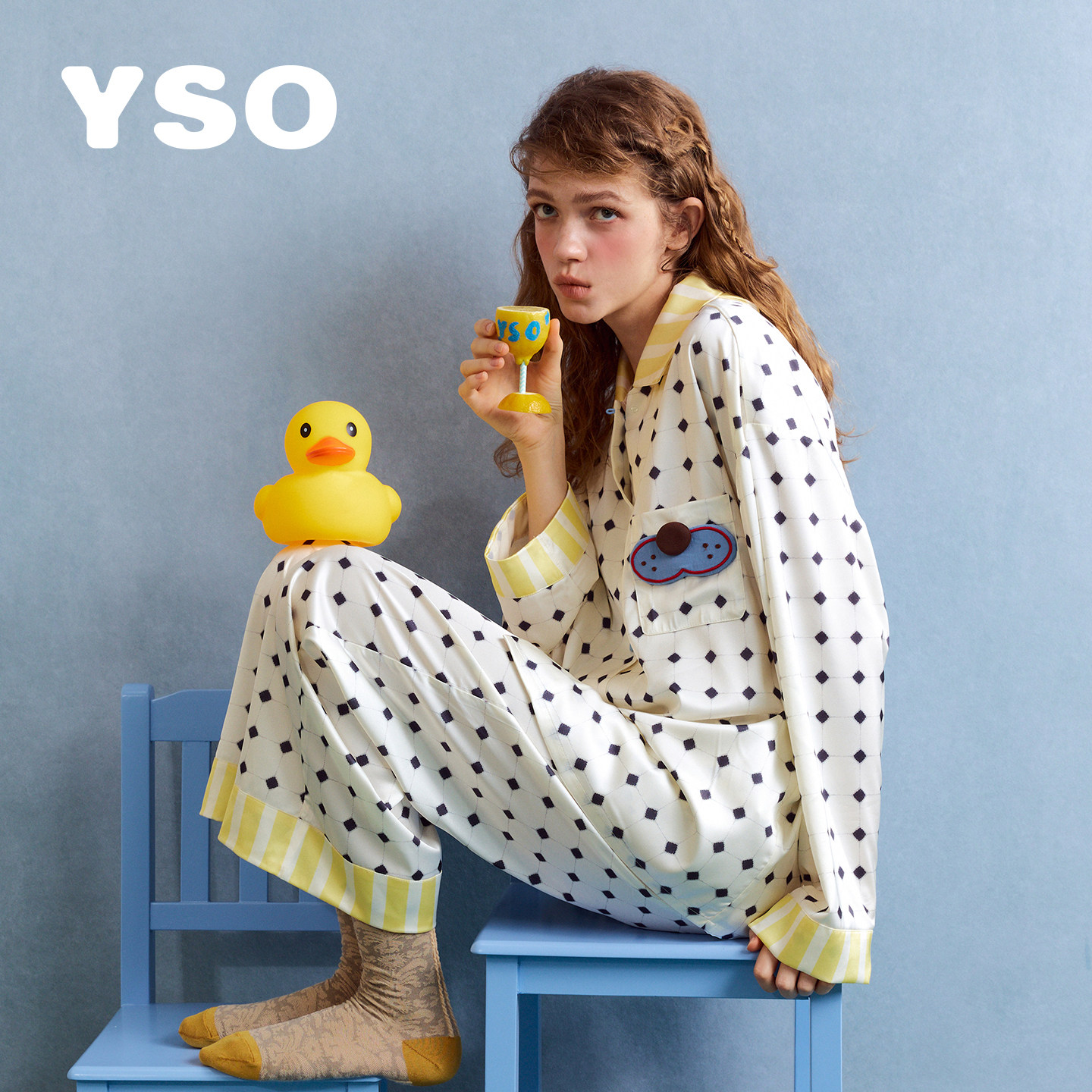 yso【酷猫系列】睡衣女春夏新款卡通冰丝翻领开衫女士家居服A