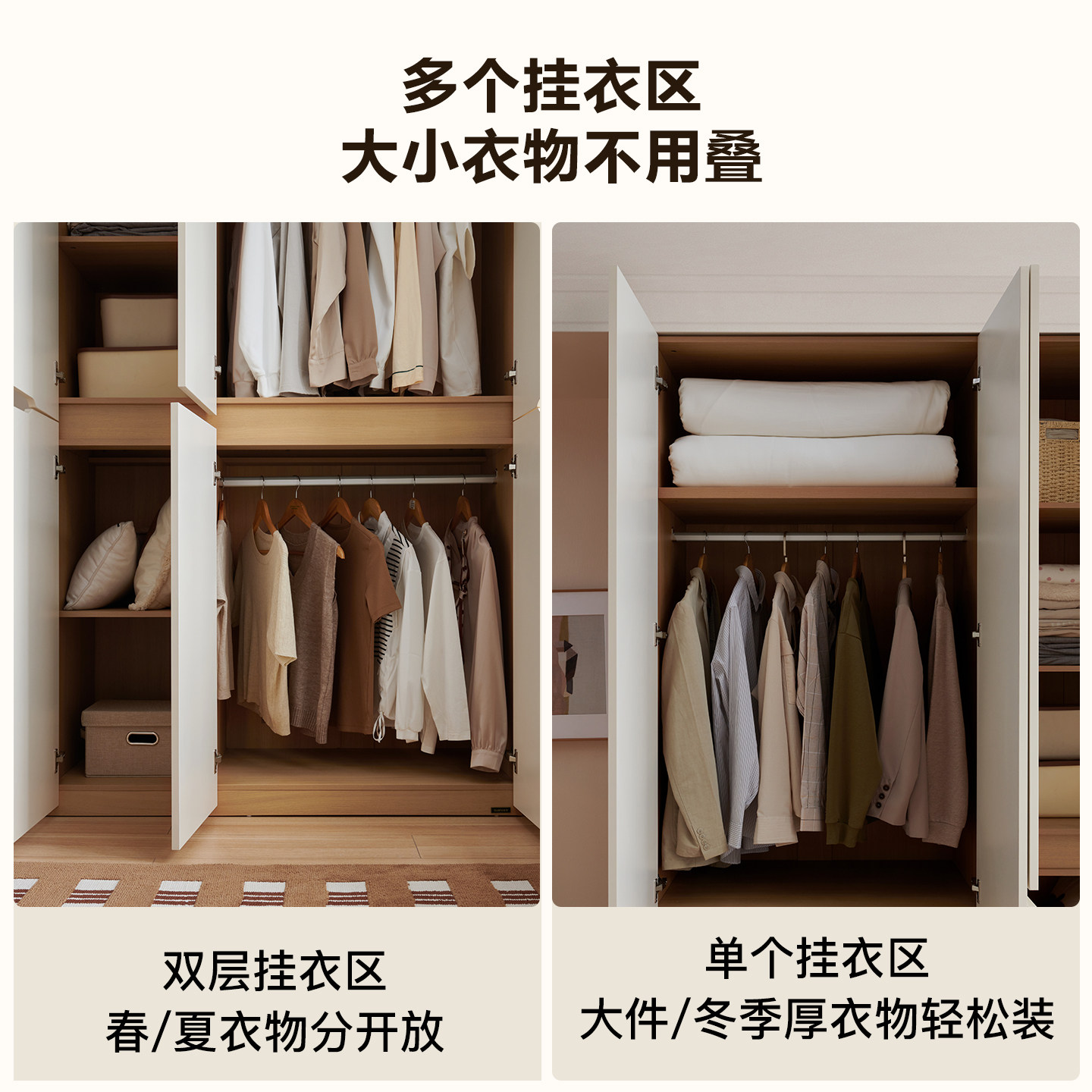 全友家居奶油风一柜到顶大衣柜卧室家用2026新款爆款成品衣橱家具