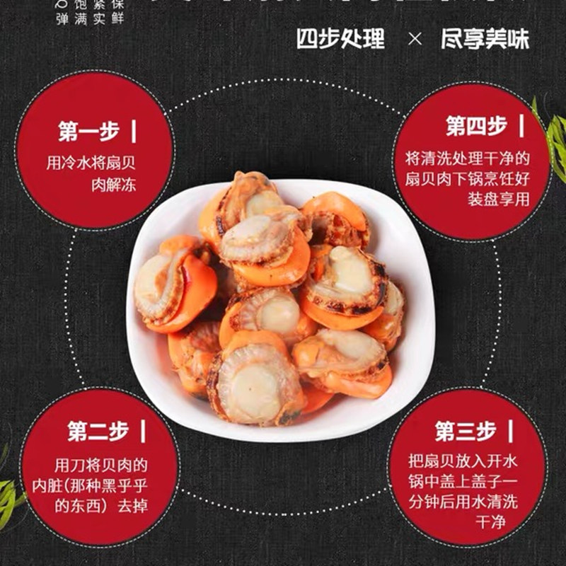 野生新鲜扇贝肉3斤现剥非超大带黄大扇贝冷冻扇贝即食蒜蓉海鲜