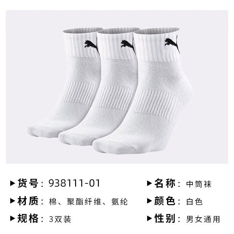PUMA彪马男袜女袜中帮袜子2025冬季新款透气运动时尚休闲袜