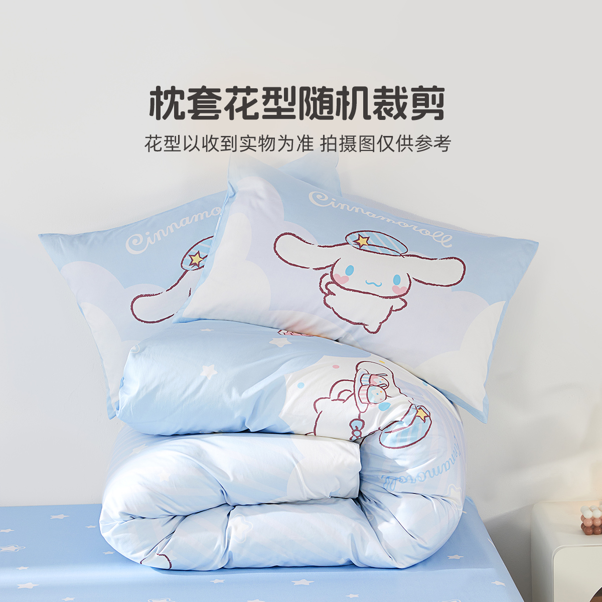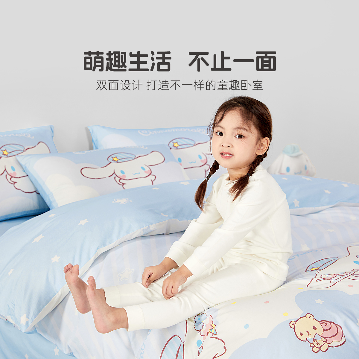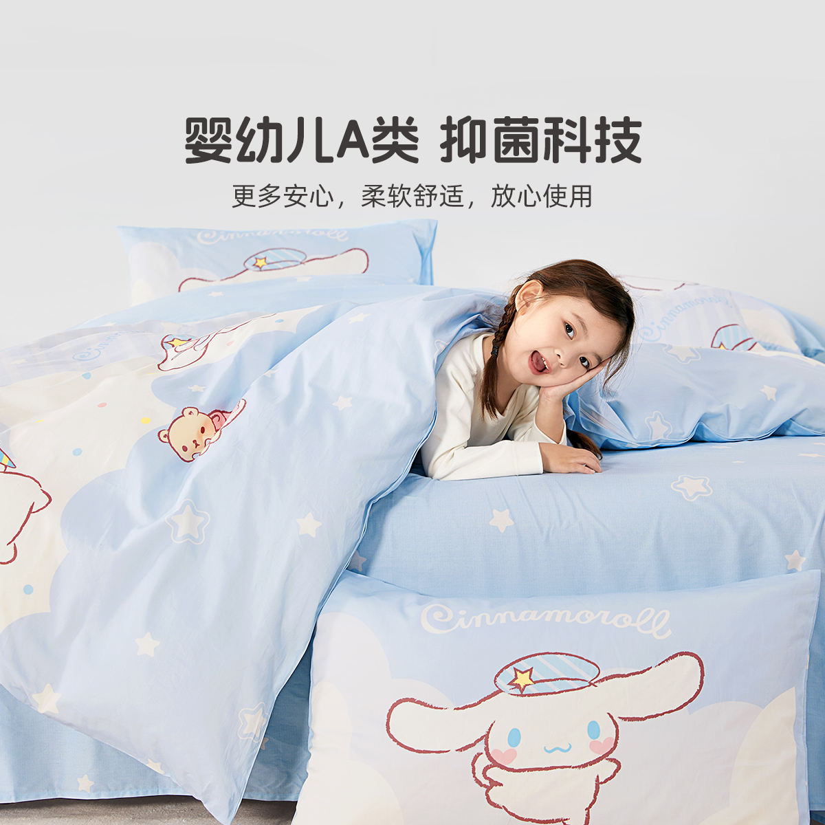 水星儿童A类100纯棉床品三/四件套床单被套女童卡通玉桂狗全棉