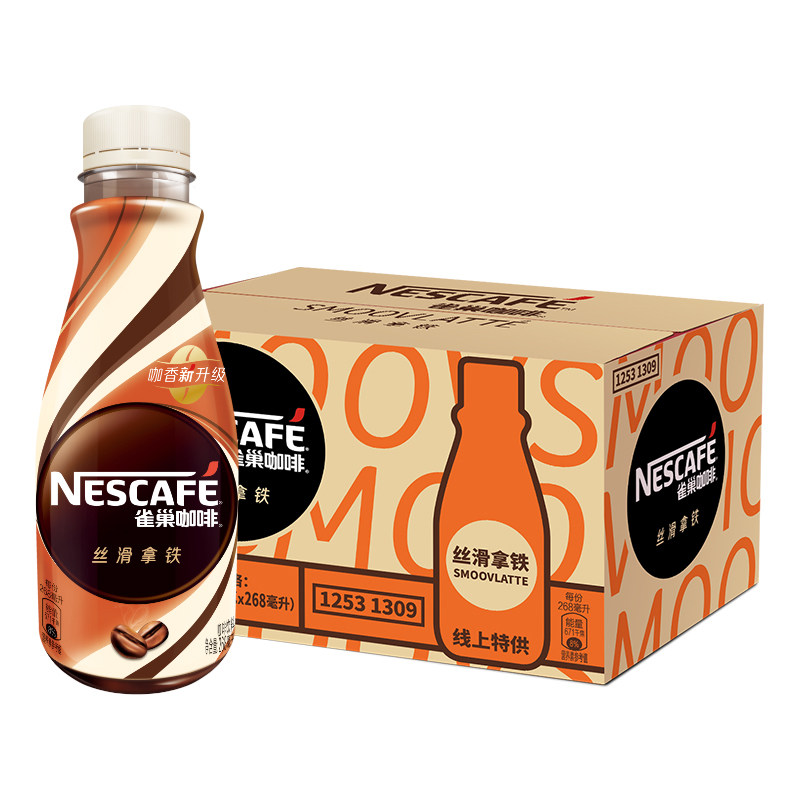 雀巢咖啡丝滑拿铁即饮提神饮料瓶装咖啡268ml无蔗糖榛果官方正品