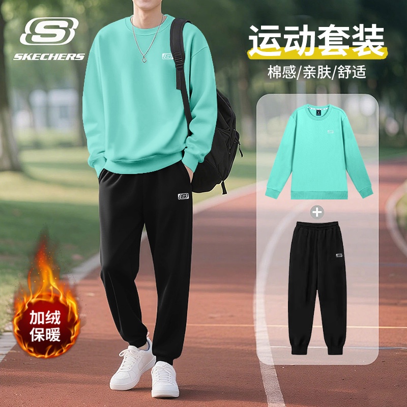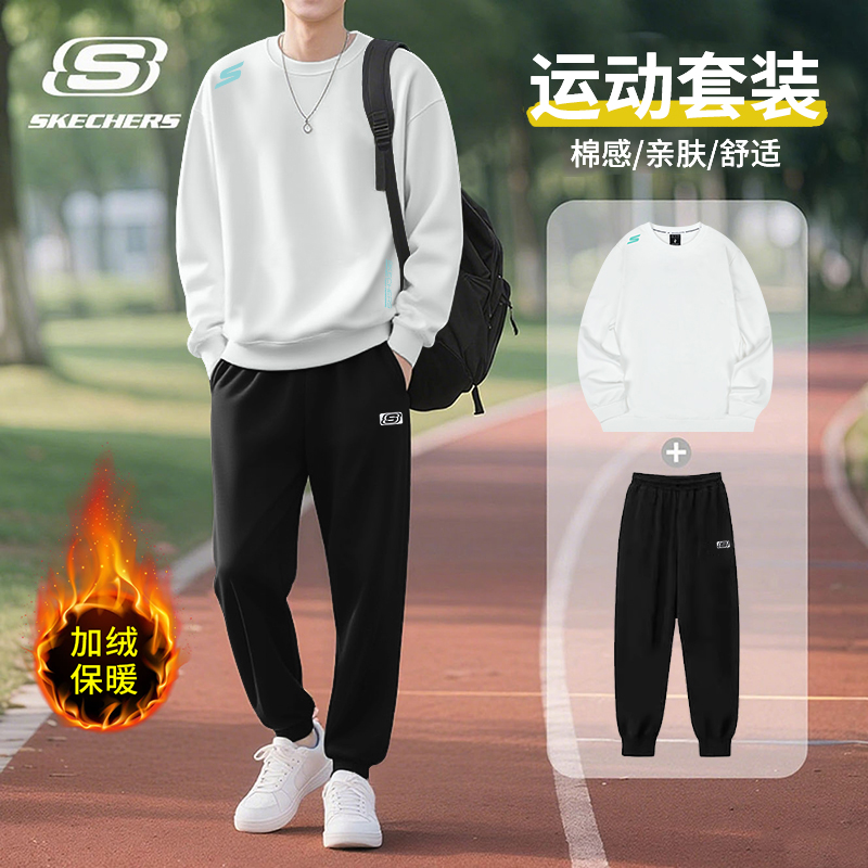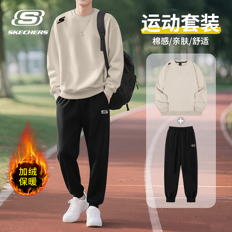 斯凯奇运动套装男2025秋冬季加绒保暖圆领卫衣长袖长裤加厚运动服