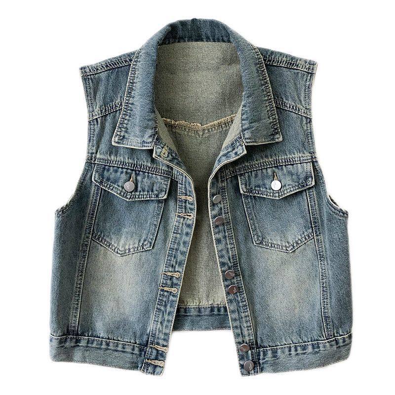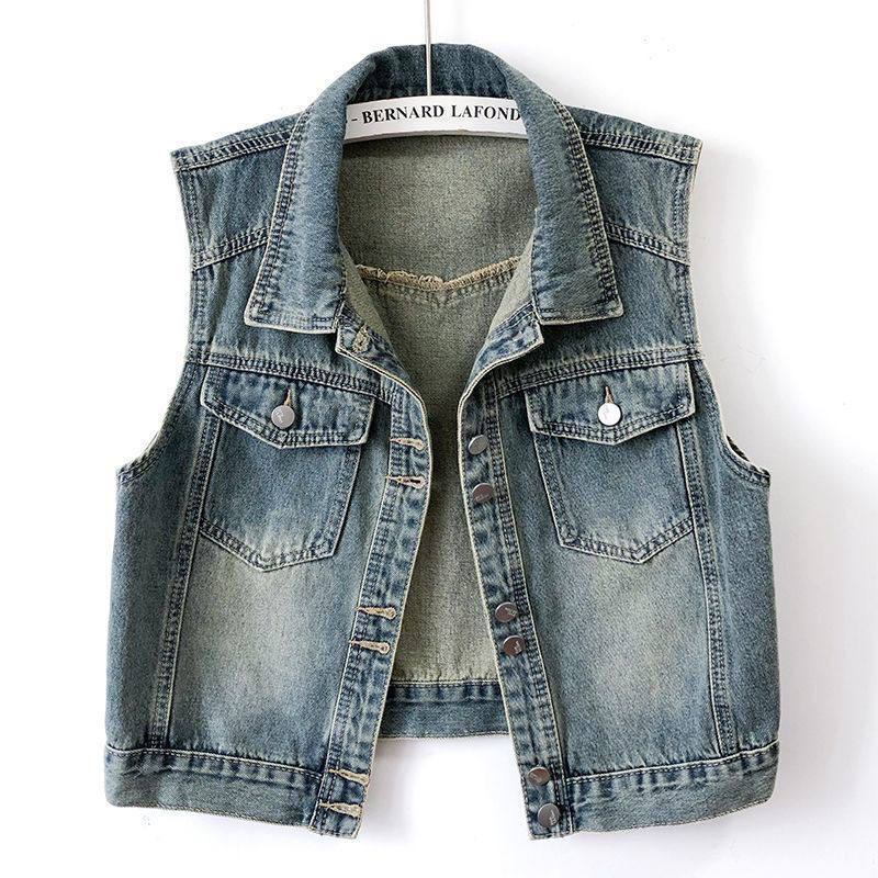 今年流行特惠港风复古牛仔马甲女士短款显瘦无袖背心坎肩马夹工厂