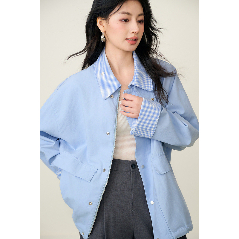 Basic House/百家好2025秋季新款撞色百搭宽松气质感翻领长袖衬衫